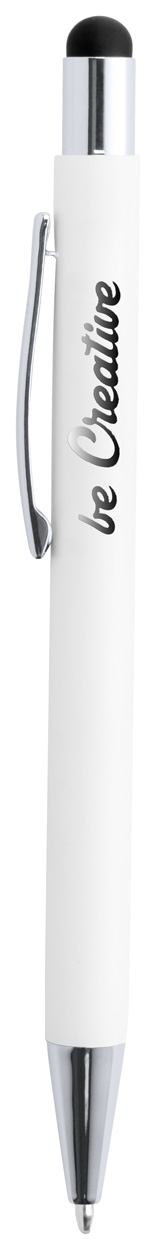 Aluminium-Kugelschreiber mit Touchpen und Spezialbeschichtung für eine Farbgravur, blauschreibend.