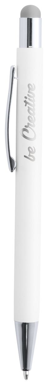 Aluminium-Kugelschreiber mit Touchpen und Spezialbeschichtung für eine Farbgravur, blauschreibend.