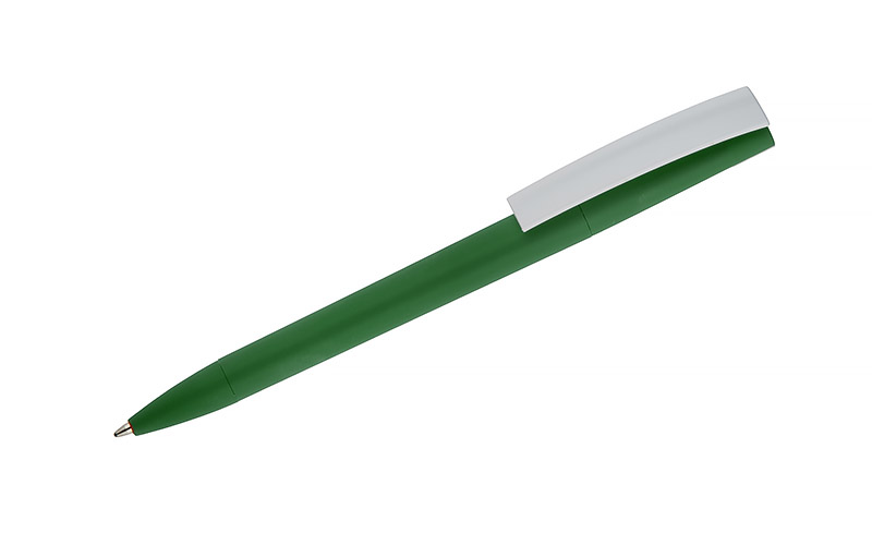 Der Kugelschreiber ZENO ist aus Kunststoff mit matter Soft-Touch-Oberfläche gefertigt. Seine moderne Form und der kontrastierende weiße Clip verleihen ihm einen wiedererkennbaren Look. Die Drehmechanik ermöglicht ein bequemes Auswerfen der X20-Feder mit einer Schreibstärke von 1,0 mm. Leicht und handlich ist er sowohl für den täglichen Gebrauch als auch als praktischer Werbeträger mit Platz für Ihr Logo geeignet.