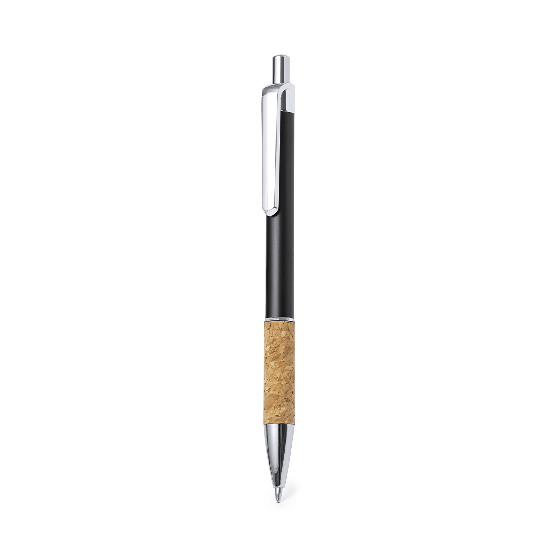 Stilvoller Kugelschreiber aus Kork und Aluminium mit Druckknopfmechanismus. Robuster Aluminiumschaft mit glänzender Oberfläche und Korkgriff, erhältlich in verschiedenen markanten Farben. Metallclip und blaue Tinte. Präsentiert in einem einzelnen recycelten Beutel. Hergestellt aus pflanzlichen Bestandteilen, um die Verwendung natürlicher Rohstoffe zu fördern und Schadstoffemissionen zu reduzieren.