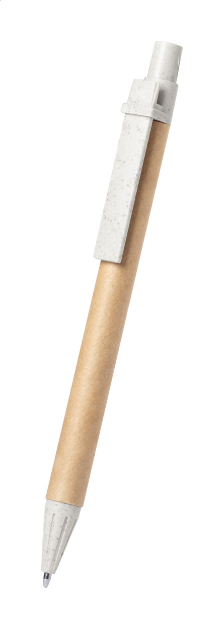 Kugelschreiber aus Recycling-Papier mit Elementen aus Weizenstroh-Kunststoff, blauschreibend.
