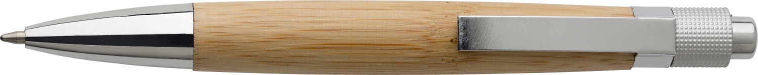 Kugelschreiber aus Bambus, mit Metall-Clip, Drücker und Spitze mit blauer Mine.