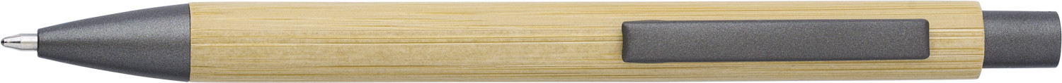Kugelschreiber aus Bambus mit Kunststoffspitze und Metallclip. Blaue Mine.