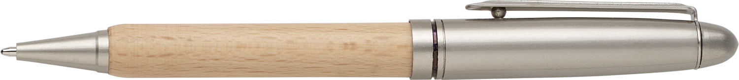 Kugelschreiber aus Buchenholz mit Drehfunktion, Metall-Clip, inklusive Geschenk-Etui und blauer Mine. Ausgestattet mit deutscher Dokumententinte.