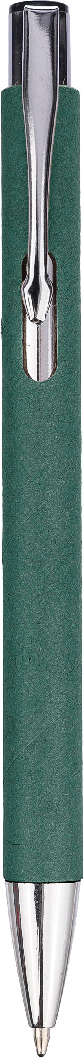 Kugelschreiber aus recyceltem Karton mit verchromten Details. Spitze und Druckknopf aus Kunststoff und Metallclip. Ca. 800 Meter Schreiblänge, Blaue Tinte.