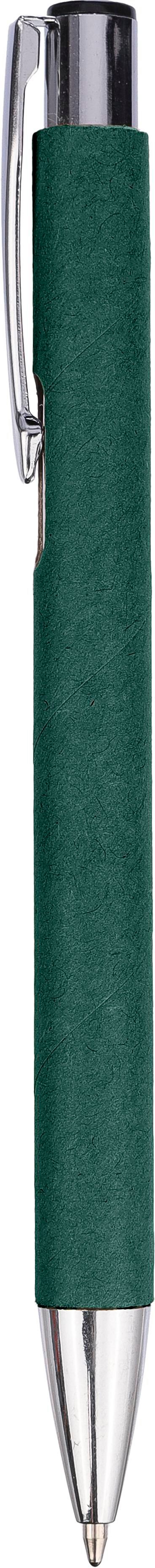 Kugelschreiber aus recyceltem Karton mit verchromten Details. Spitze und Druckknopf aus Kunststoff und Metallclip. Ca. 800 Meter Schreiblänge, Blaue Tinte.