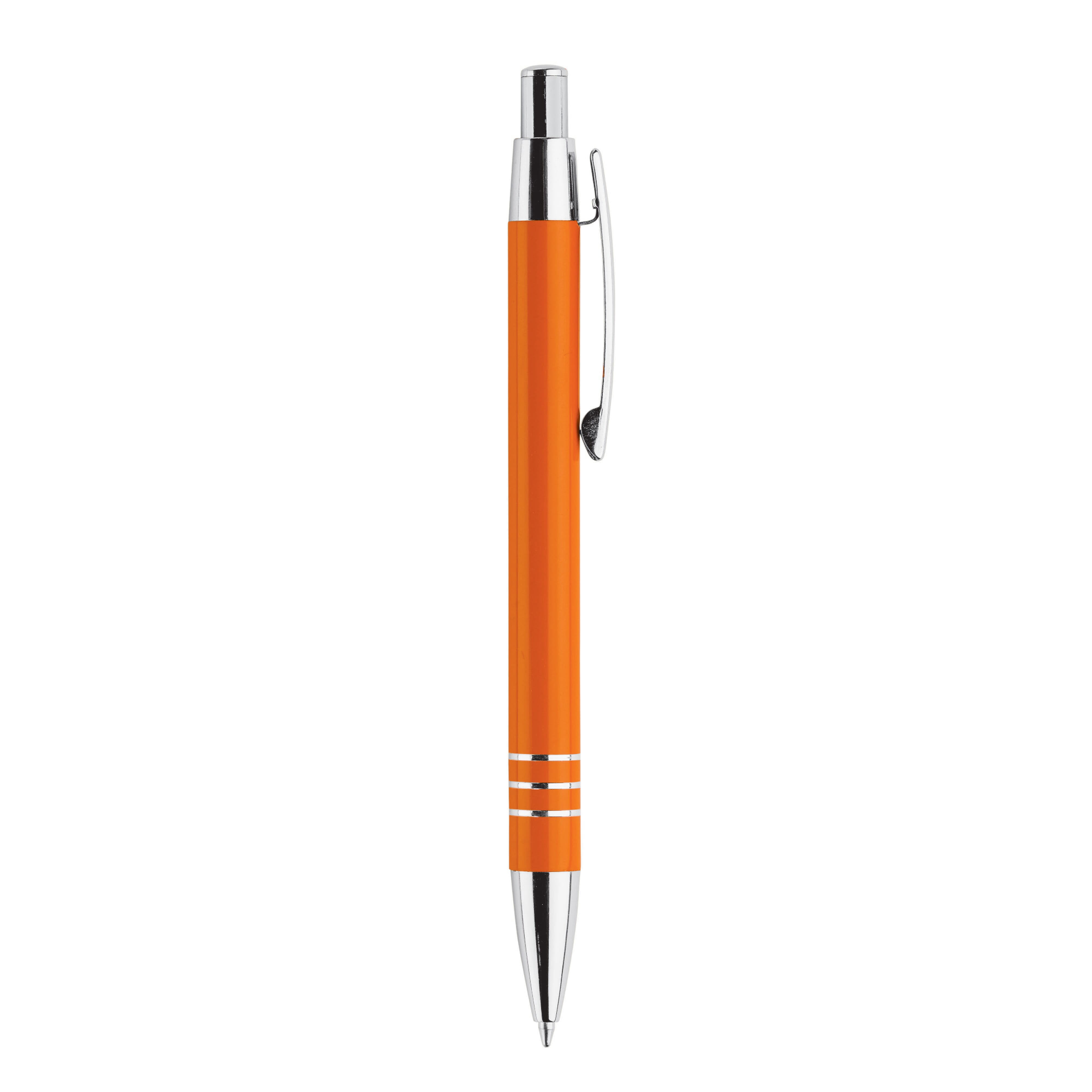 Aluminium Kugelschreiber mit 3 verchromten Ringen. Der Kugelschreiber ist in einem Aluminium Köcher verpackt.