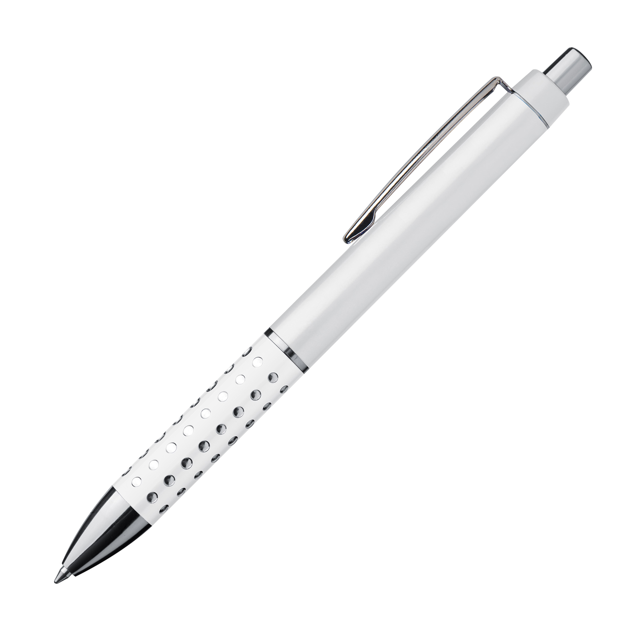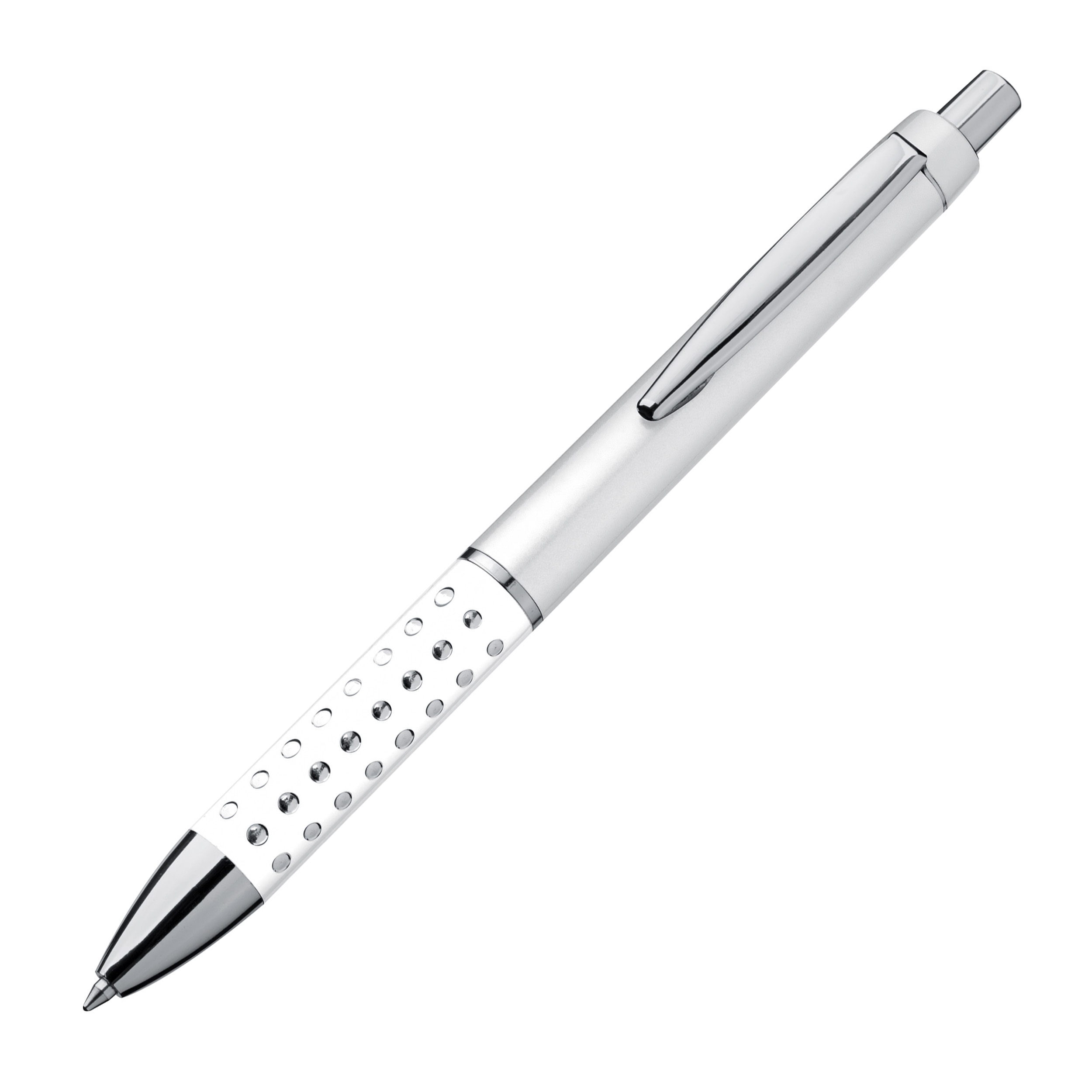 Kugelschreiber mit glitzernder, rutschfester Griffzone und blau schreibender Großraummine. Ihre Werbung drucken wir auf den Schaft.