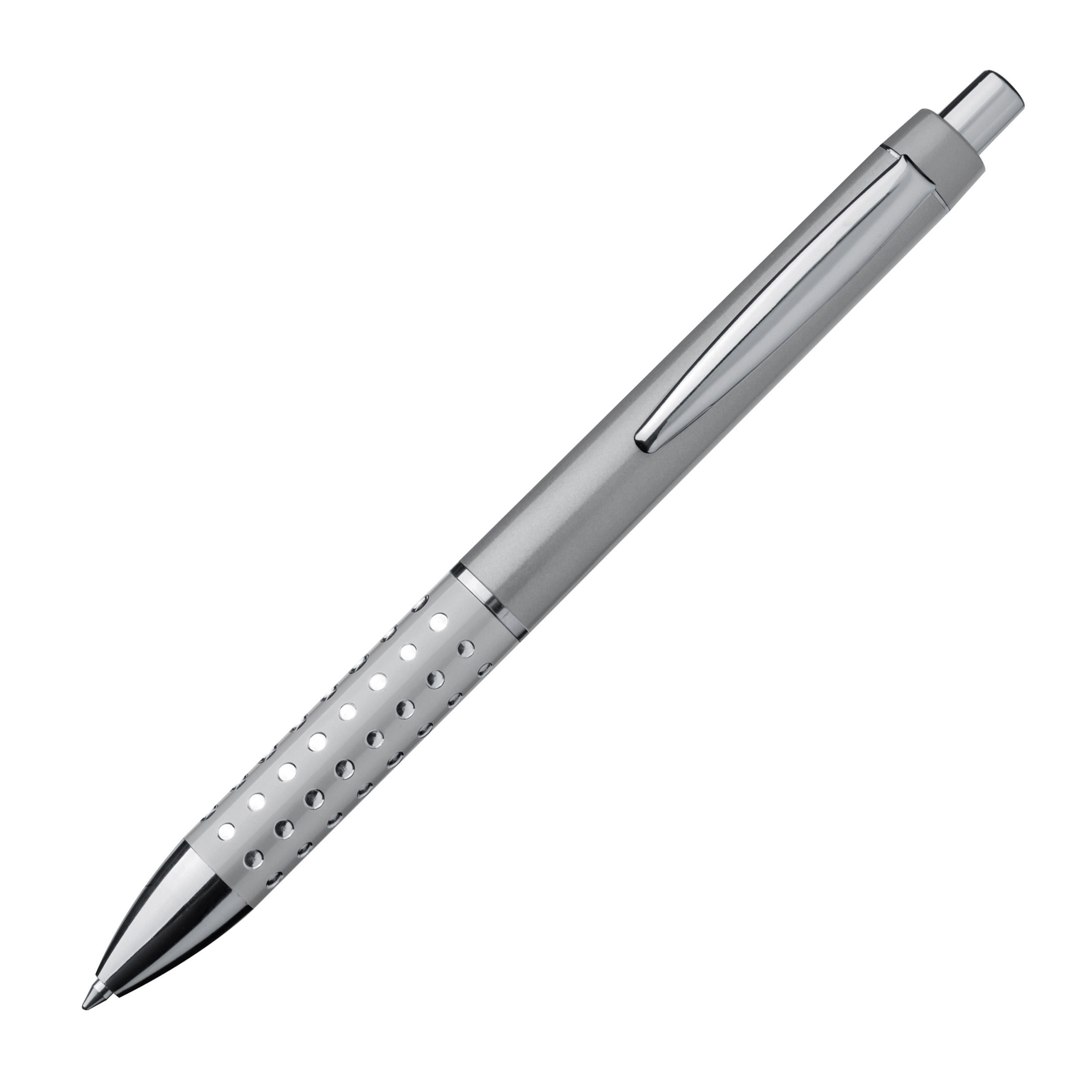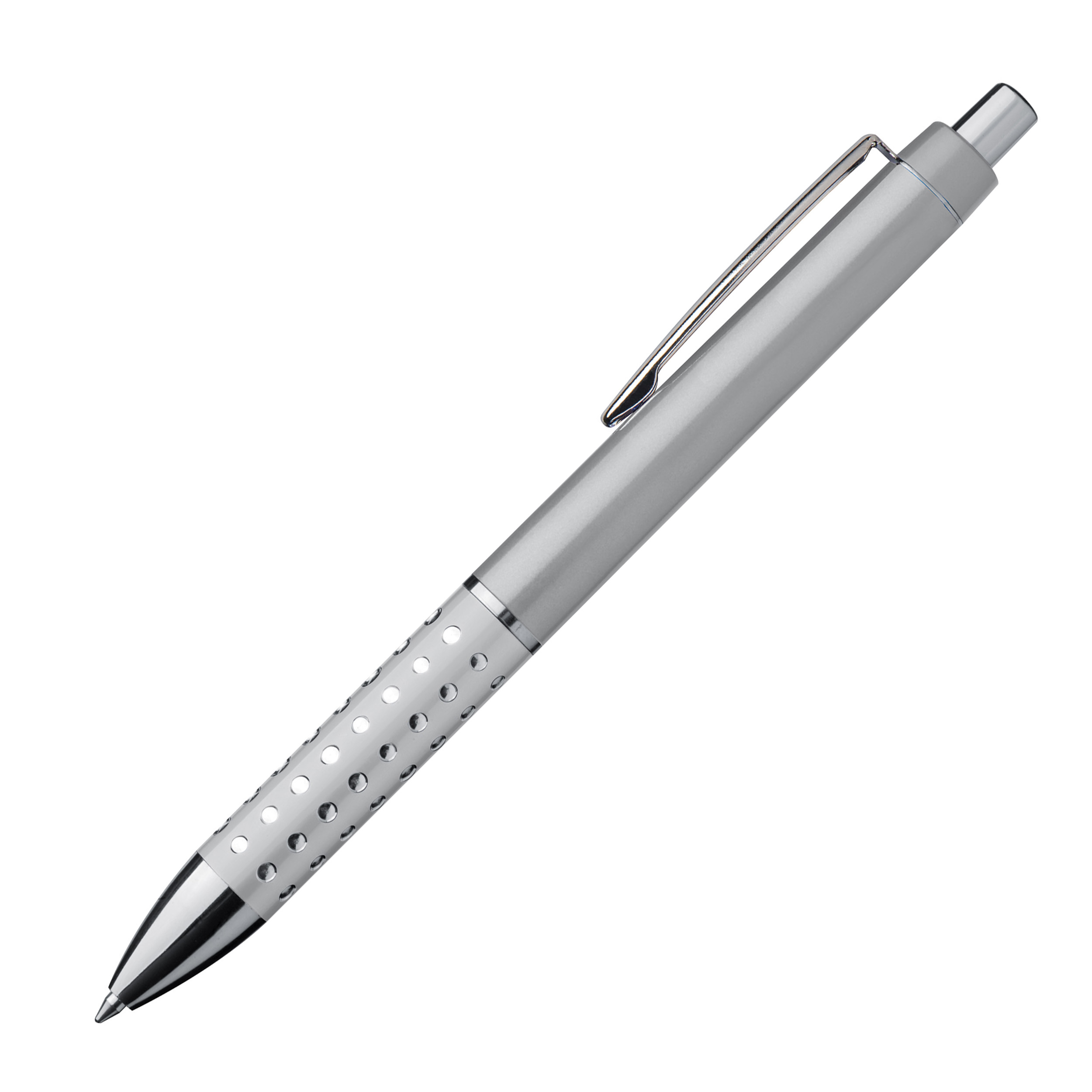 Kugelschreiber mit glitzernder, rutschfester Griffzone und blau schreibender Großraummine. Ihre Werbung drucken wir auf den Schaft.