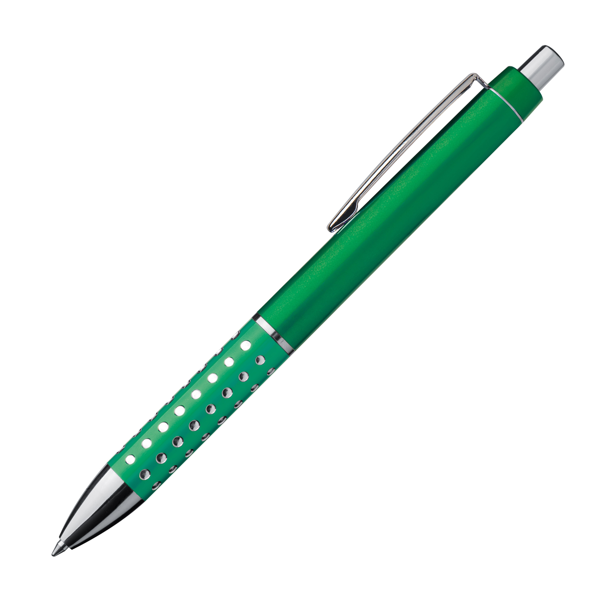 Kugelschreiber mit glitzernder, rutschfester Griffzone und blau schreibender Großraummine. Ihre Werbung drucken wir auf den Schaft.