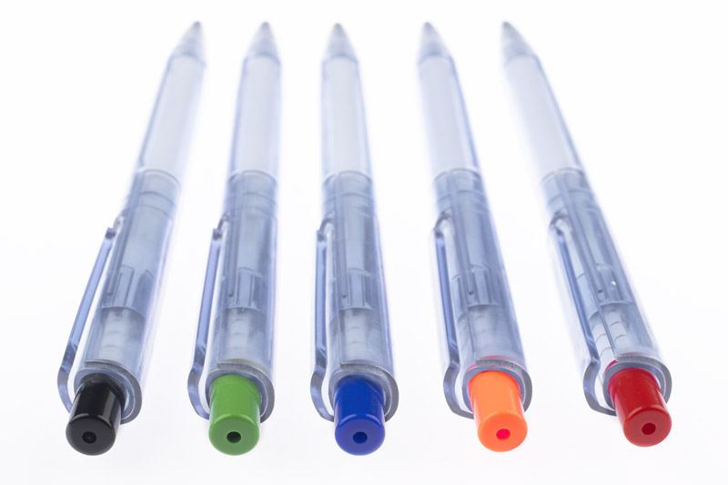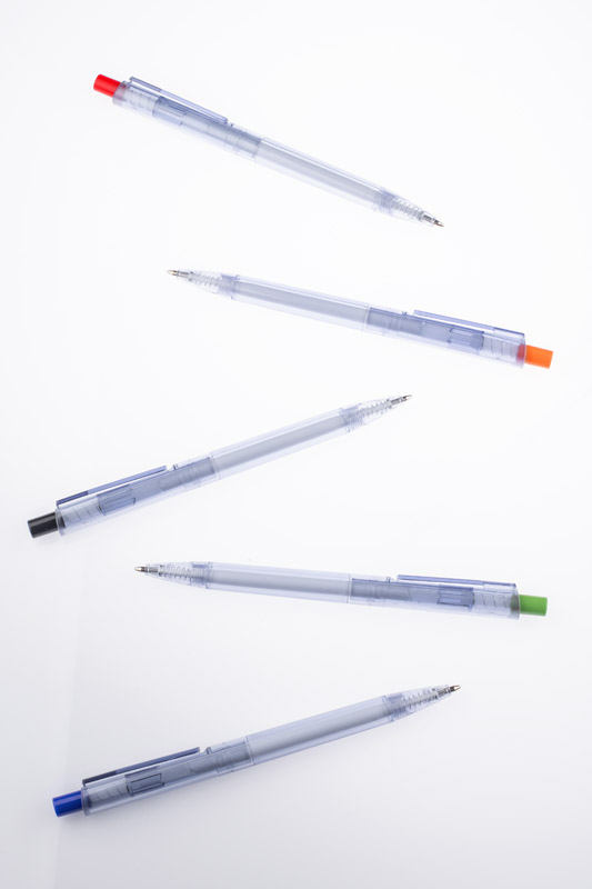 Der RECYKLO-Stift, der vollständig aus rPET (recyceltem PET) besteht, ist die Antwort auf die Suche nach Möglichkeiten zur Entsorgung von Plastikmüll. Der transparente Stiftkörper in blau ähnelt der Wasserflasche, aus der er hergestellt wurde. Automatischer Kugelschreiber, blaue Mine Typ G2.