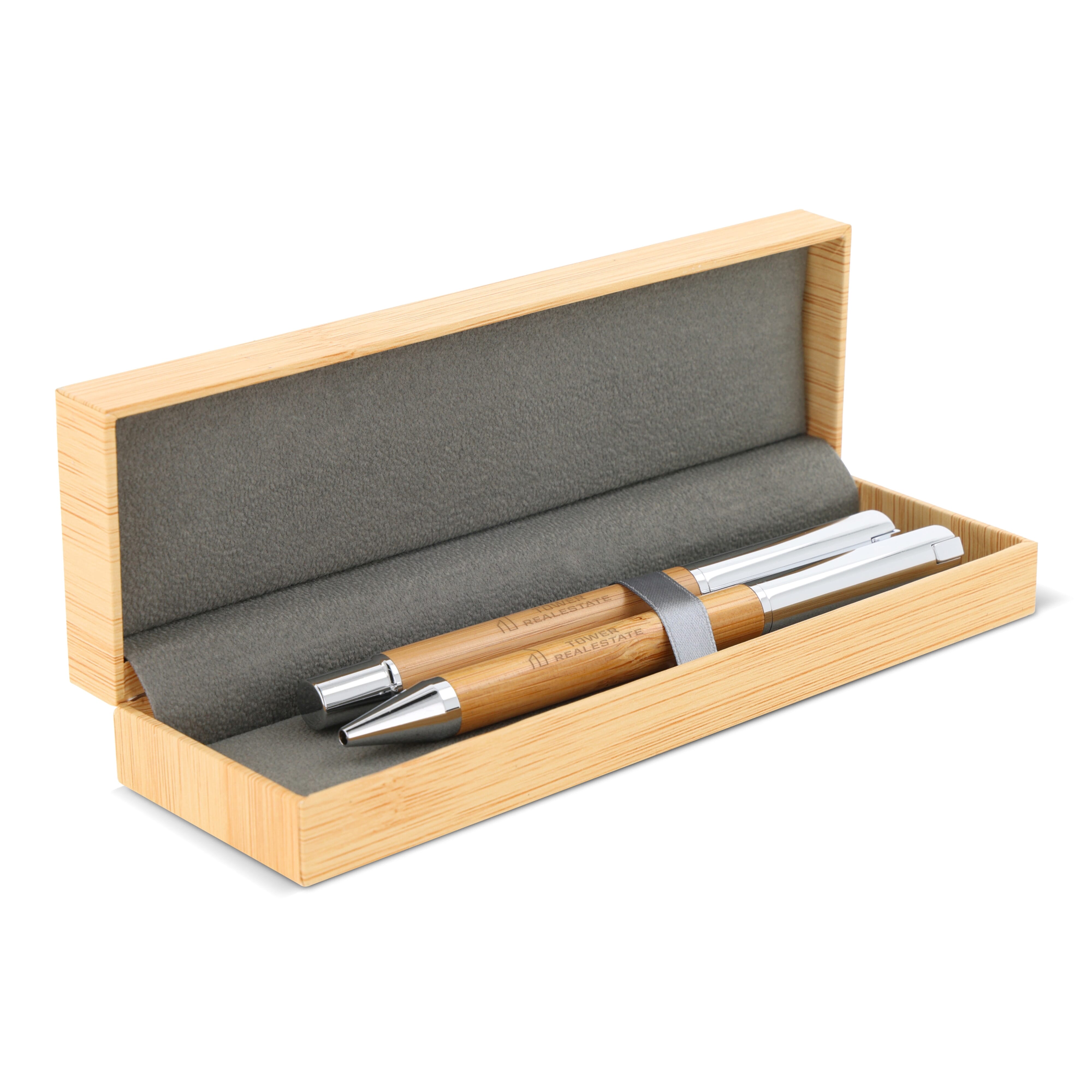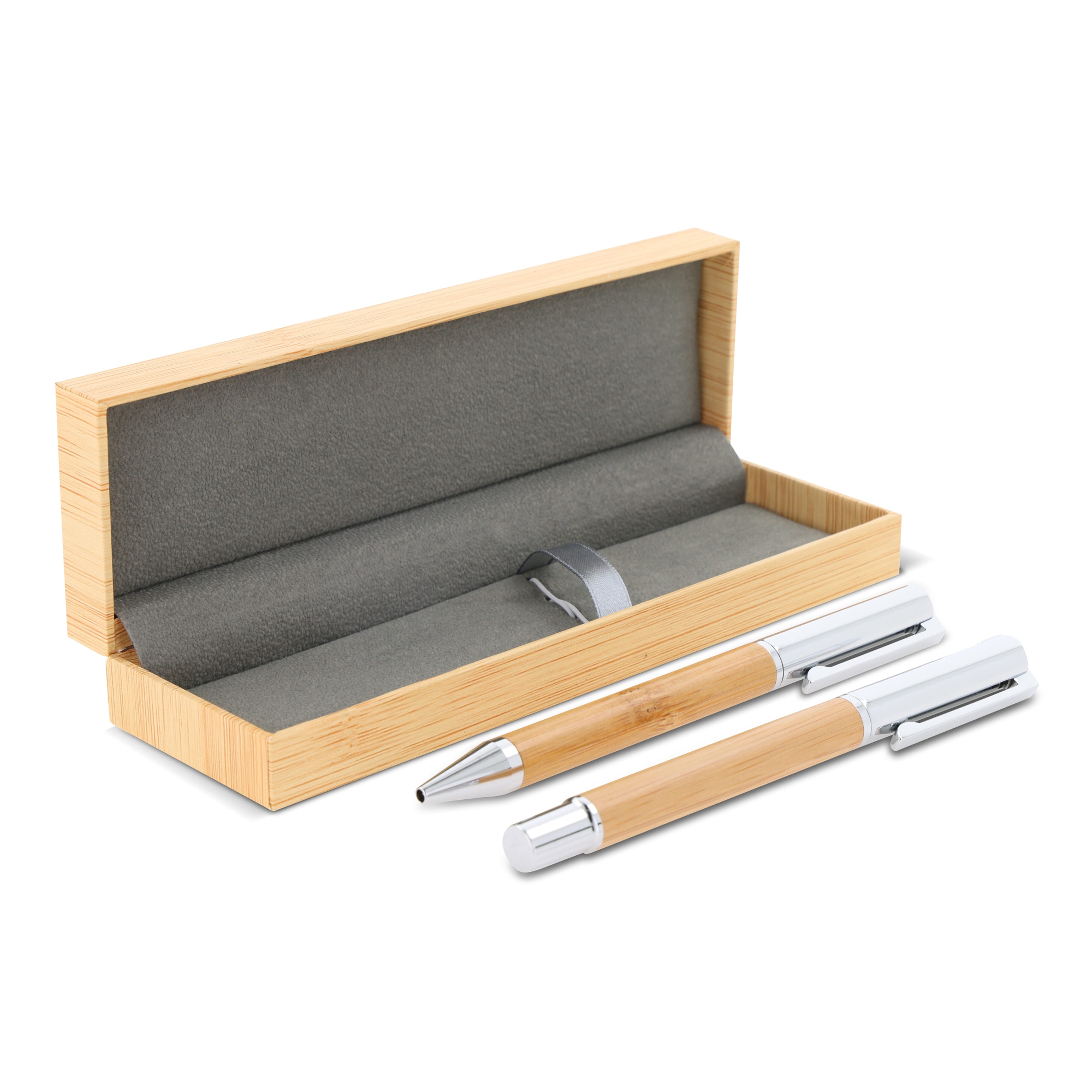 Ein Metallkugelschreiber und ein Rollerball-Stift sind in einer schönen Geschenkbox vereint. Dieses Set kann nach Ihren Wünschen gestaltet werden und ist somit ideal für die Werbung für Ihr Unternehmen.