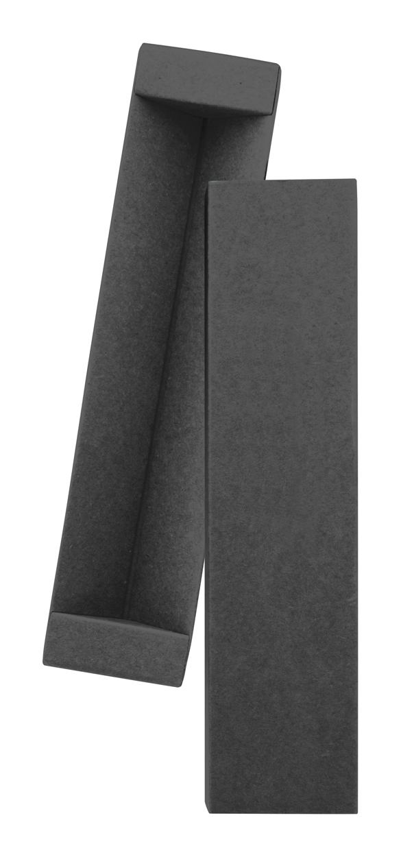 Schwarze Geschenkbox aus Pappe für ein Schreibgerät.