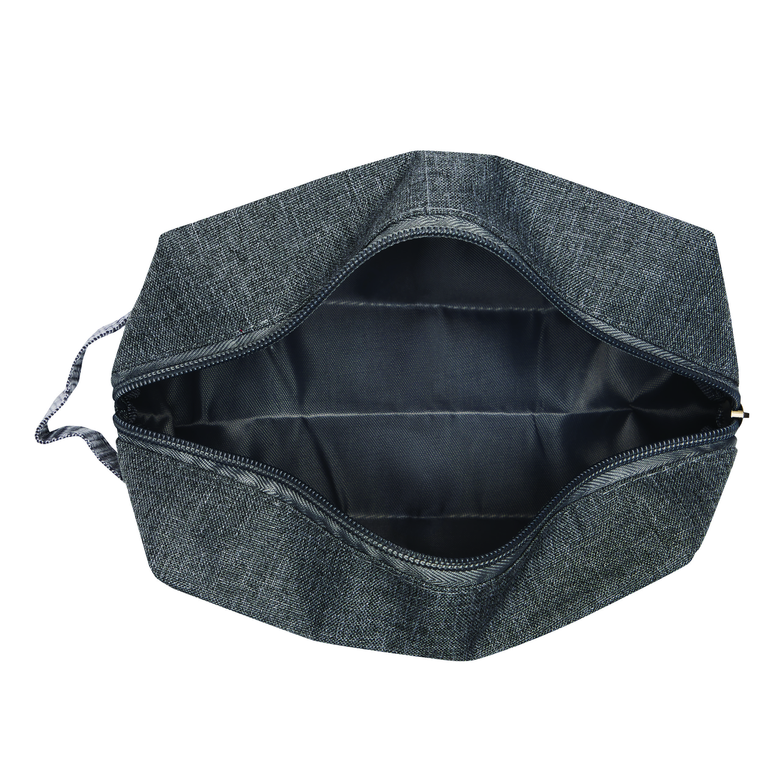 Kulturtasche CANNES: aus recyceltem Polyester (RPET), Hauptfach mit Reißverschluss, seitliche Trageschlaufe – ideal für Kosmetik und Pflegeartikel