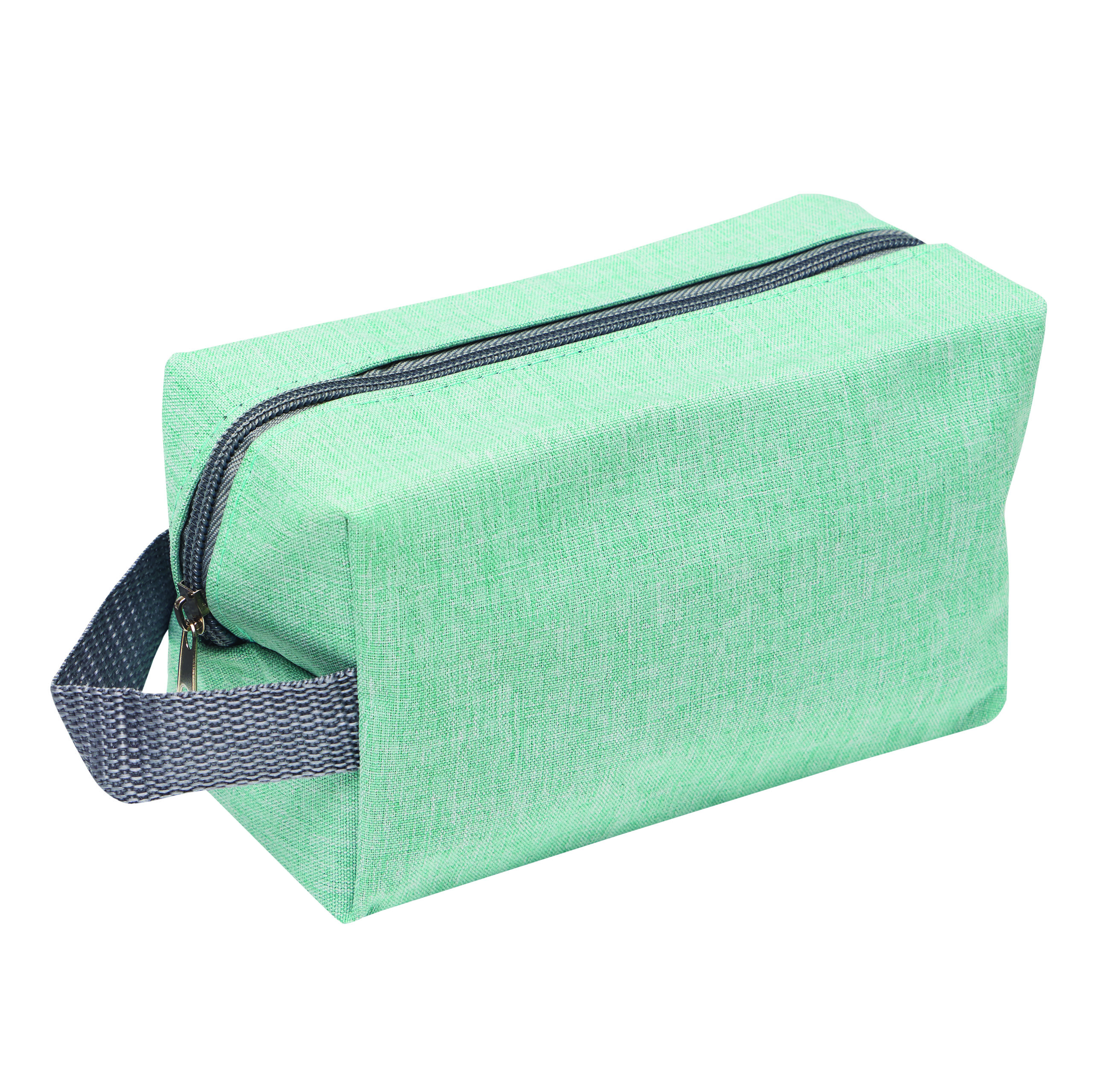 Kulturtasche CANNES: aus recyceltem Polyester (RPET), Hauptfach mit Reißverschluss, seitliche Trageschlaufe – ideal für Kosmetik und Pflegeartikel