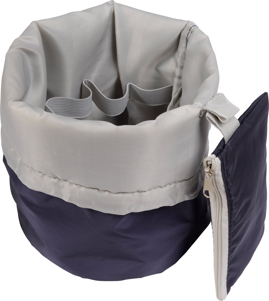 Kulturtasche TUBE: mit Kordelzug und Kunststoffstopper, innen mit 3 Netz-Einsteckfächern, 4 Flakonschlaufen und zusätzlichem Reißverschluss-Täschchen für kleine Kosmetikartikel, ist durch Druckknopf entnehmbar, gute Übersicht des Inhalts durch Umschlagen des oberen Randes