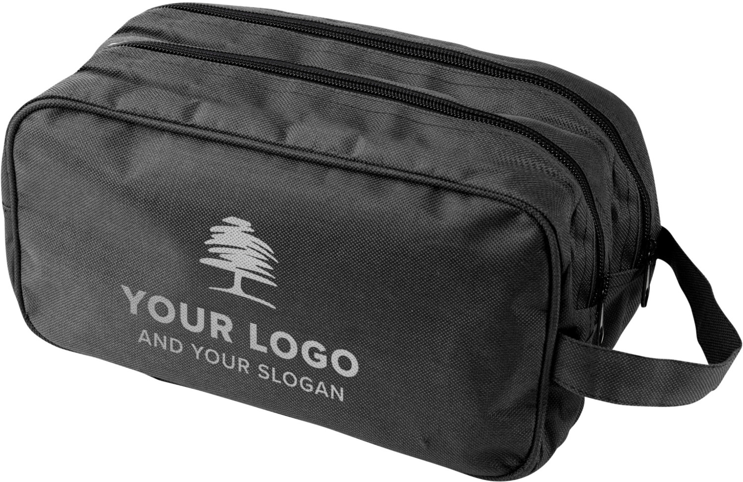 Kulturtasche aus Polyester (600D), mit 2 RV-Hauptfächern, Handschlaufe und Metall-Zipper.