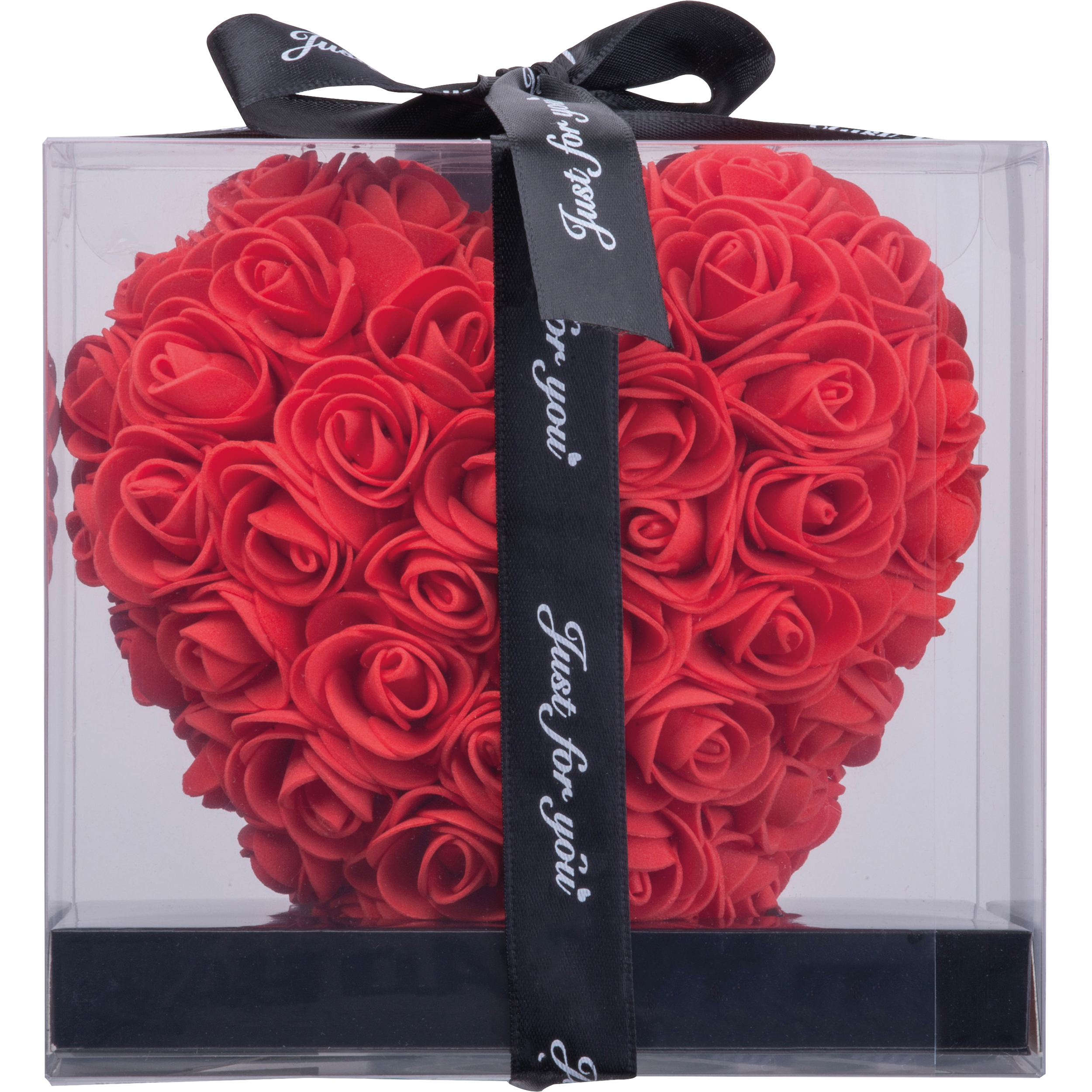 Herz aus detailgetreu gearbeiteten, künstlichen Rosenköpfen. Präsentiert in einer transparenten, hochwertigen Geschenkverpackung mit eleganter Schleife – ideal als dekoratives Präsent oder liebevolle Aufmerksamkeit. Ihre Werbung bringen wir mittels Etikett auf der Verpackung an.