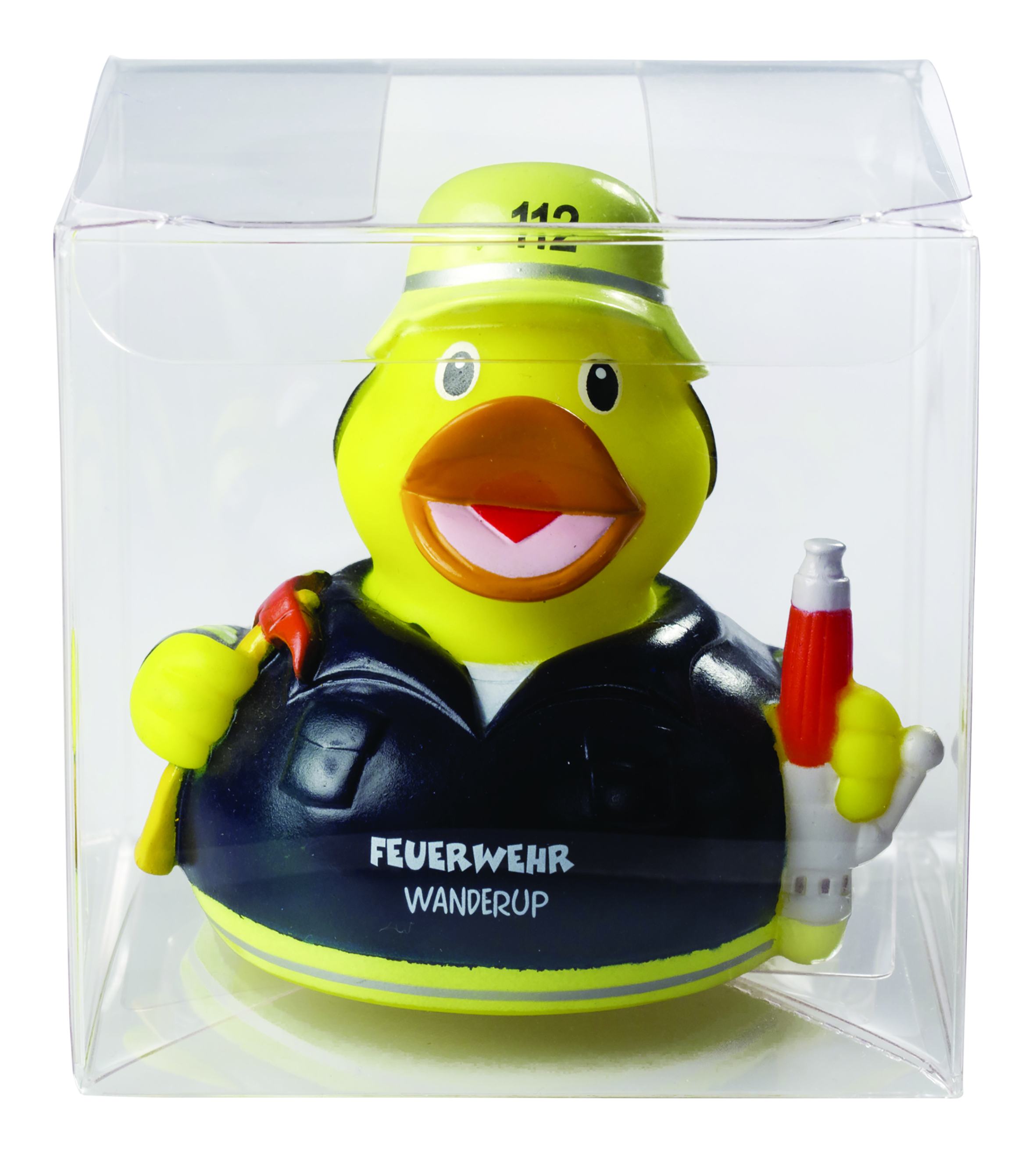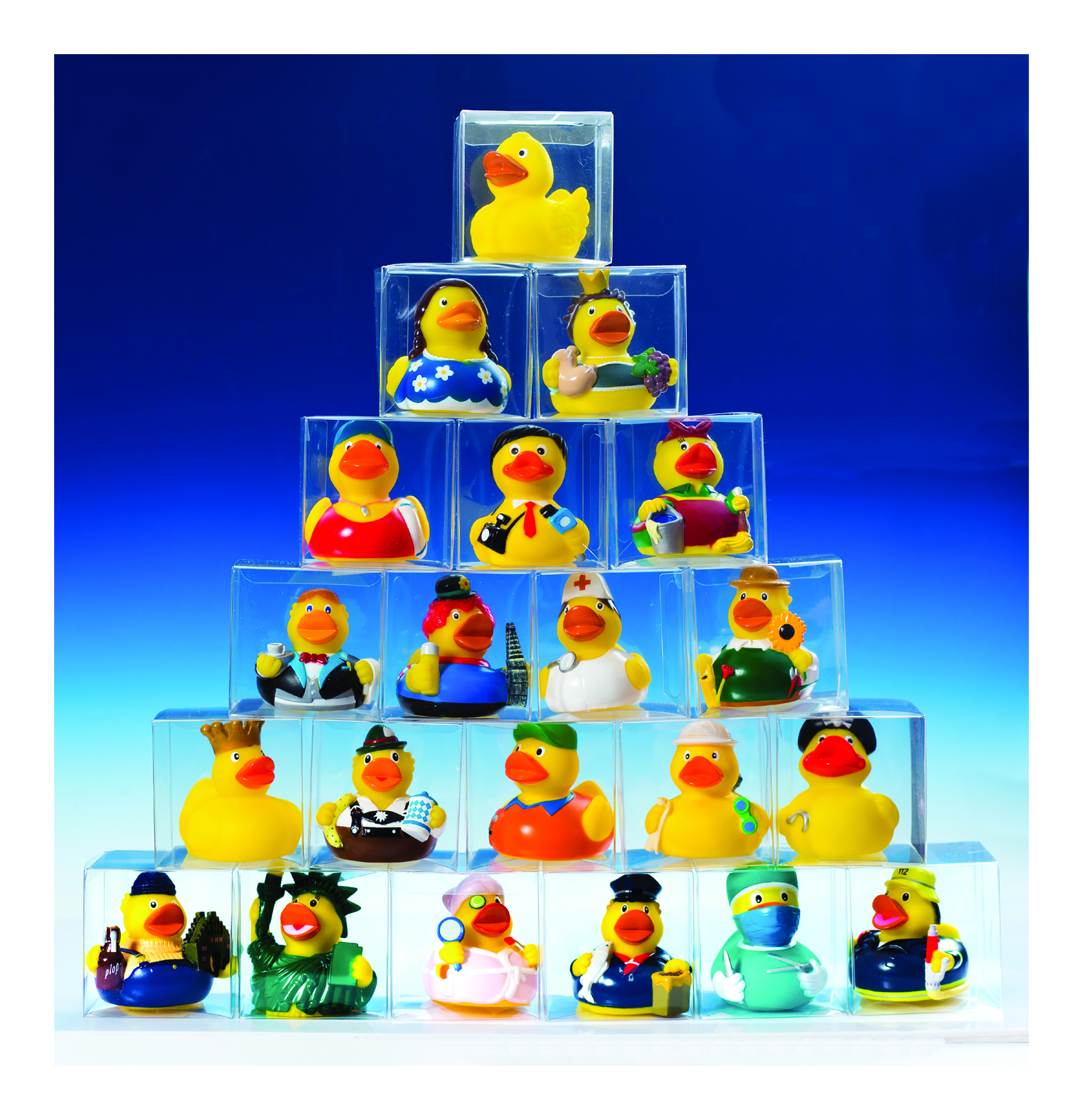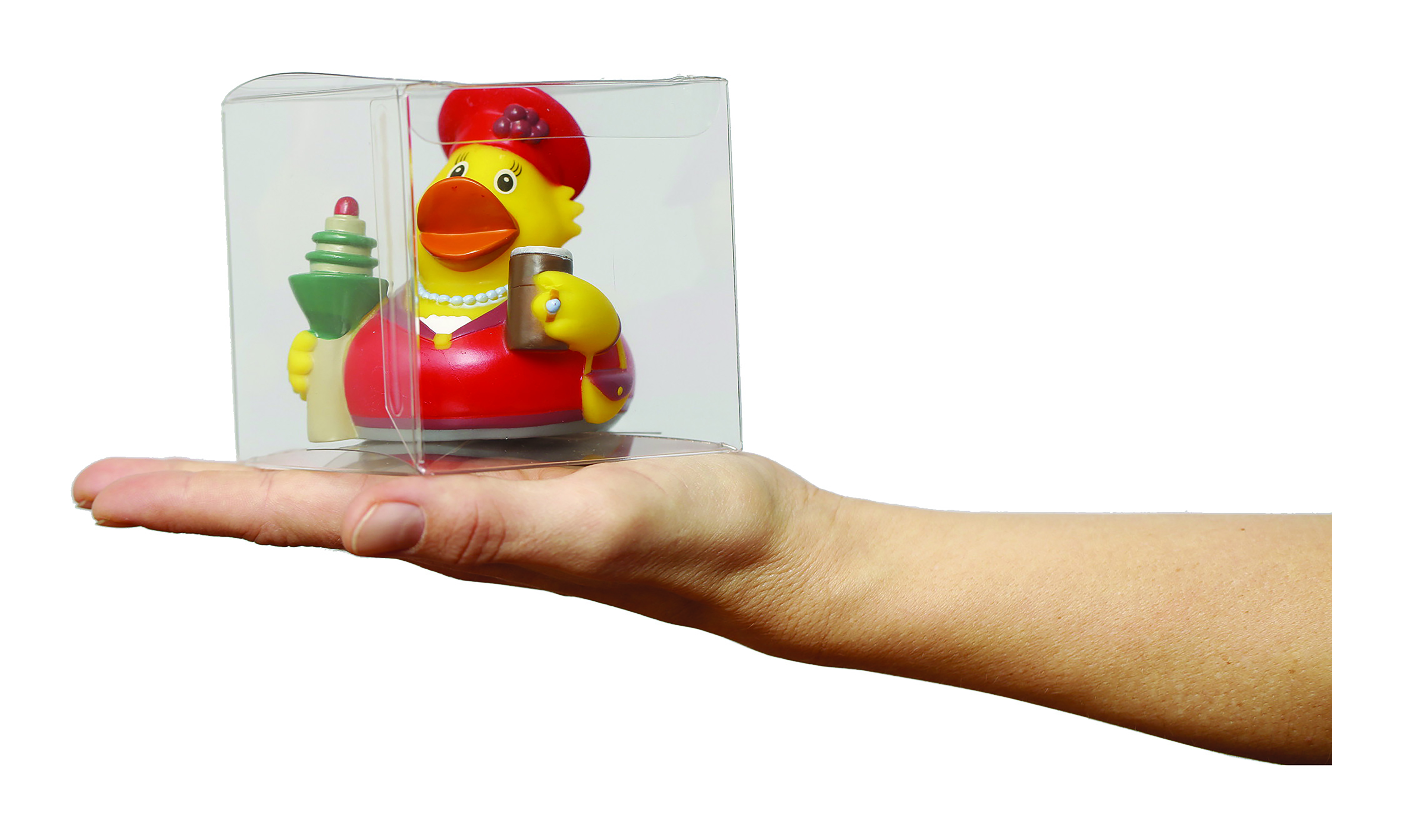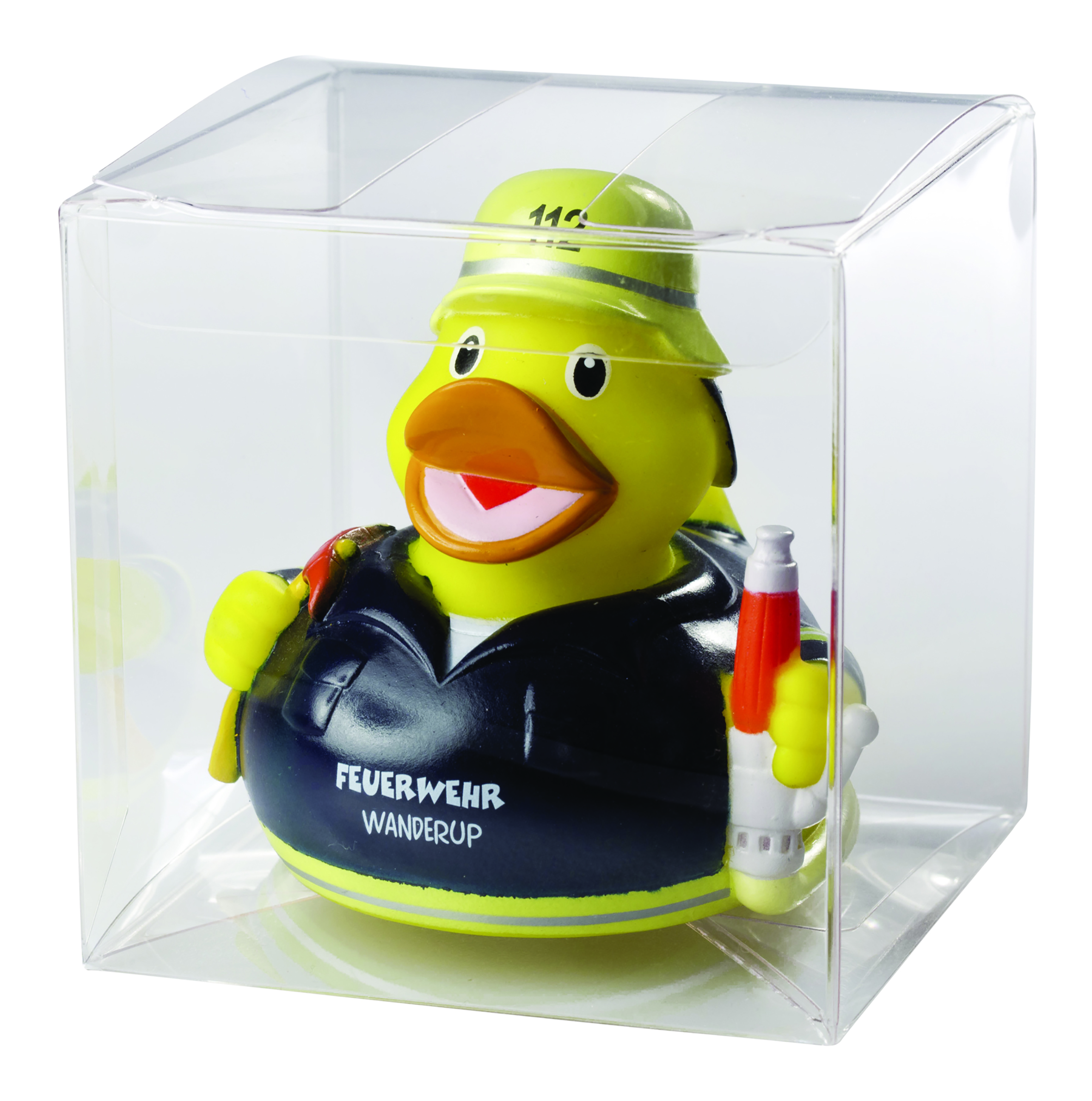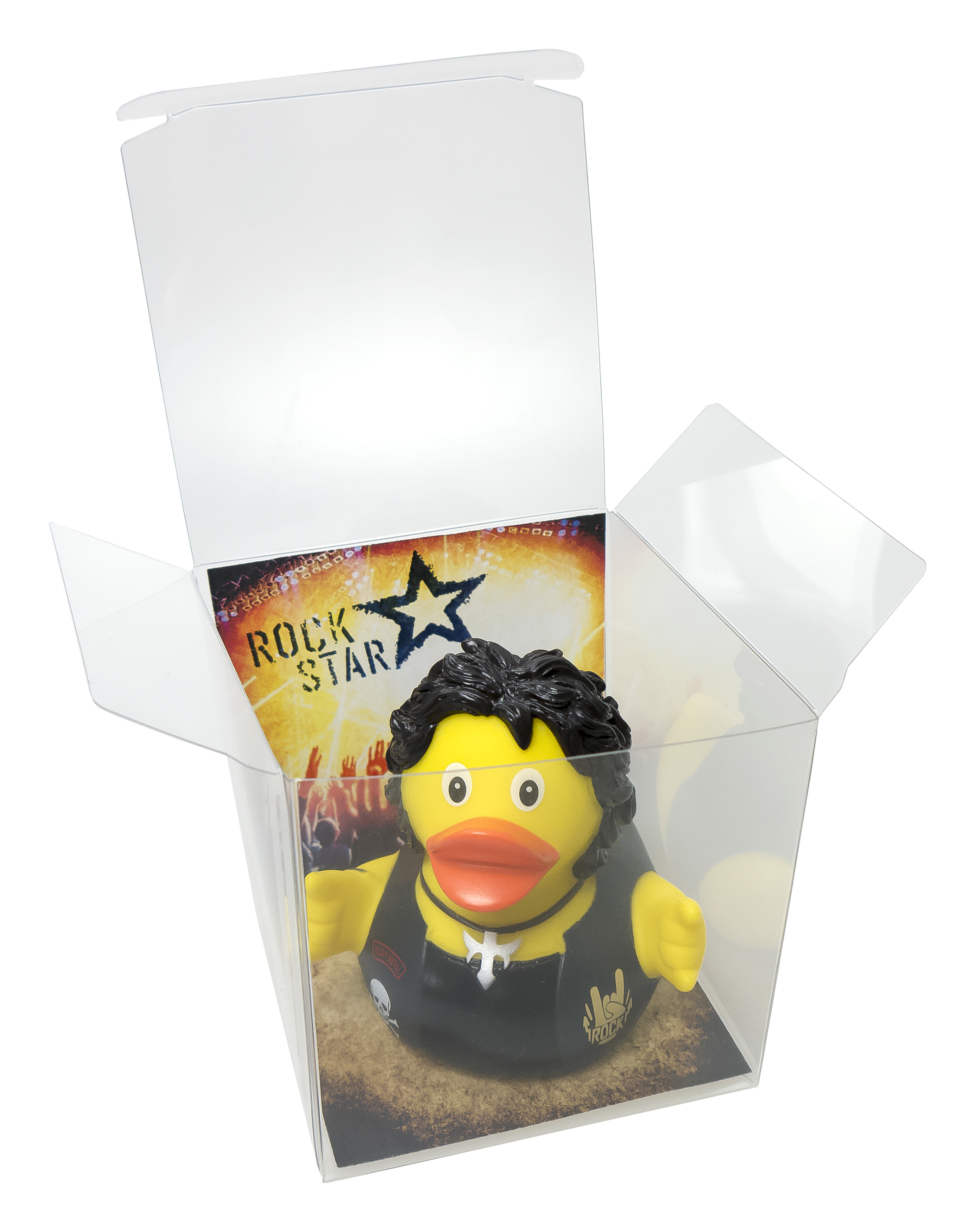 Die transparente Kunststoffschachtel macht aus einem Werbeträger ein Gefühl! Sie bietet ausreichend Platz für die meisten Quietsche-Enten. Jedes Entlein erhält so einen gebührenden Rahmen.
