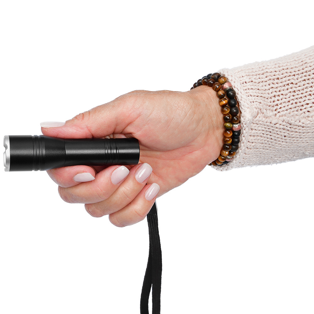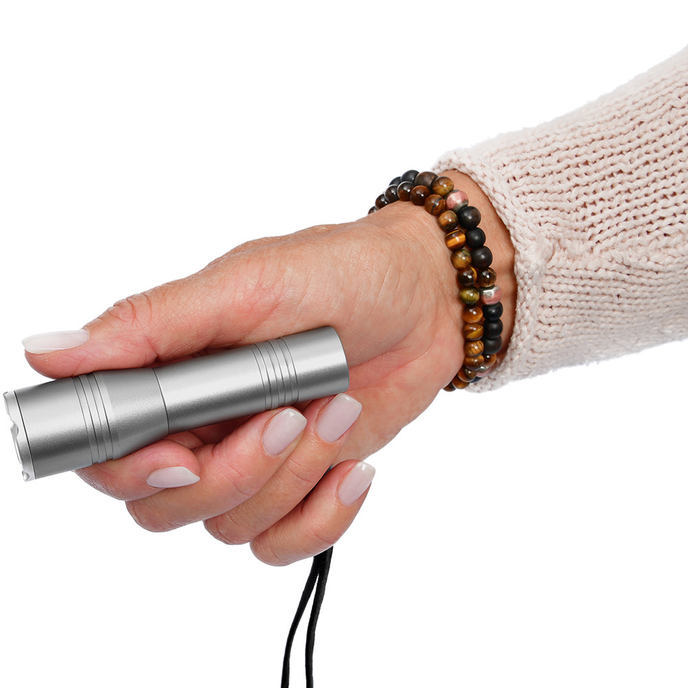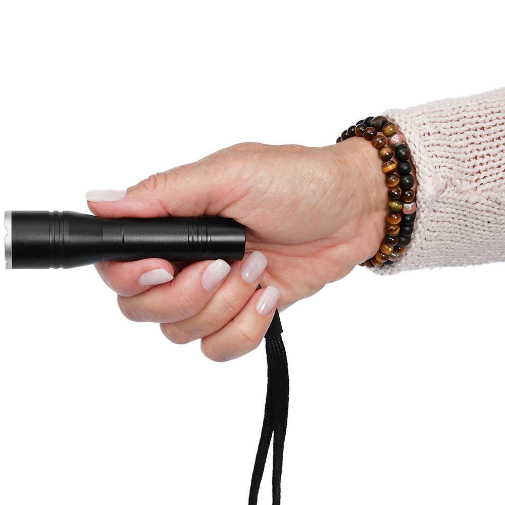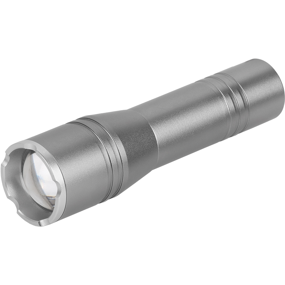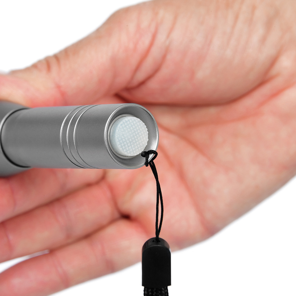 5W CREE® LED Taschenleuchte mit Fokussierung und Signallichtfunktion. Äußerst schlanke und absolut leuchtstarke LED Taschenleuchte für einen vielseitigen Anwendungsbereich. Gehäuse: Aluminium eloxiert. Leuchtmittel: High Power 5W CREE® XP-G SMD LED. Lichtwerte: 100 Lumen, 25 m Leuchtweite (100% Power). Leuchtdauer: ca. 6 Stunden (100% Power). Leuchtmodi: 100% Power weißes Licht / 50% Power weißes Licht / Blinklicht weiß. Equipment: fokussierbar durch Drehen des Leuchtenkopfes, Handschlaufe, fluoreszierender An- / Ausschalter. Schutzklasse: IPX4. Stromversorgung: 1 x AA Batterie (inkl.). Verpackung: schwarze Geschenkverpackung.