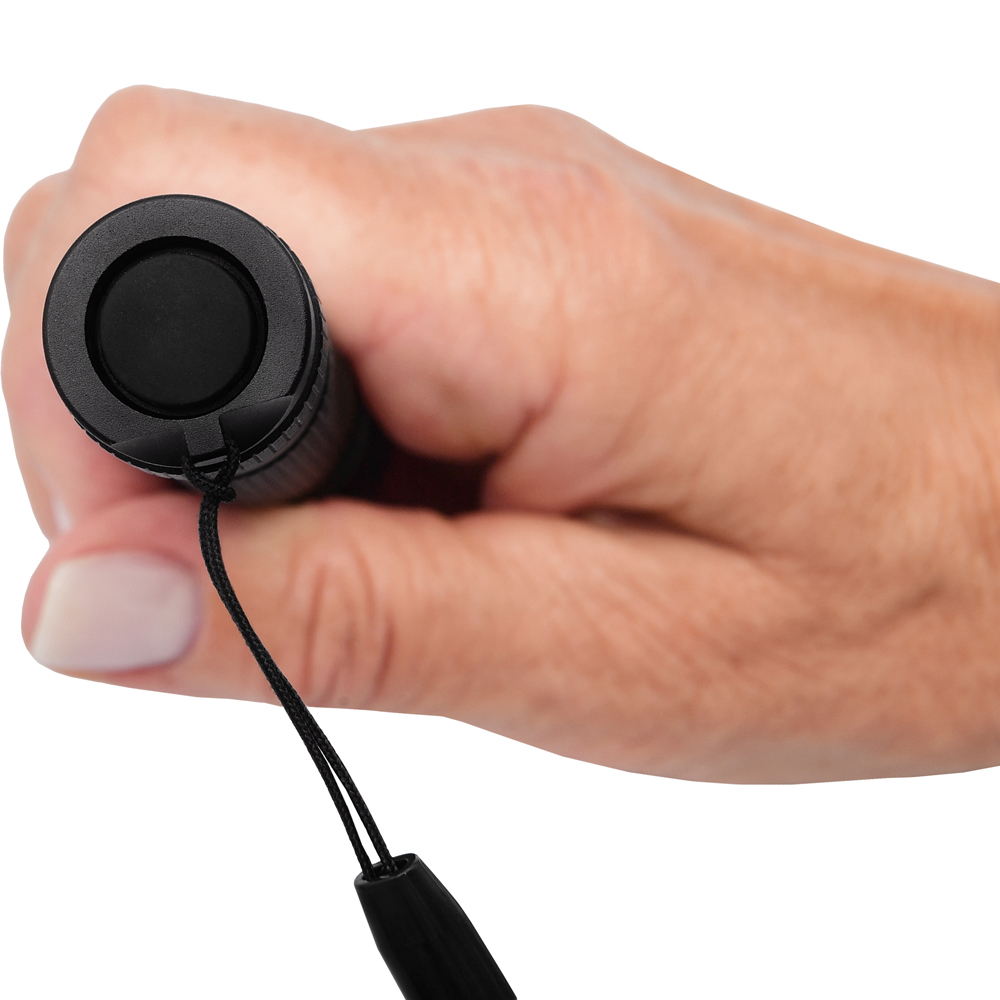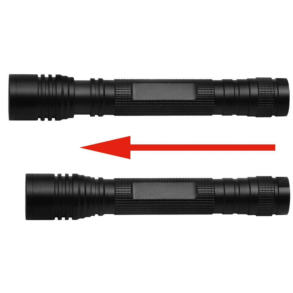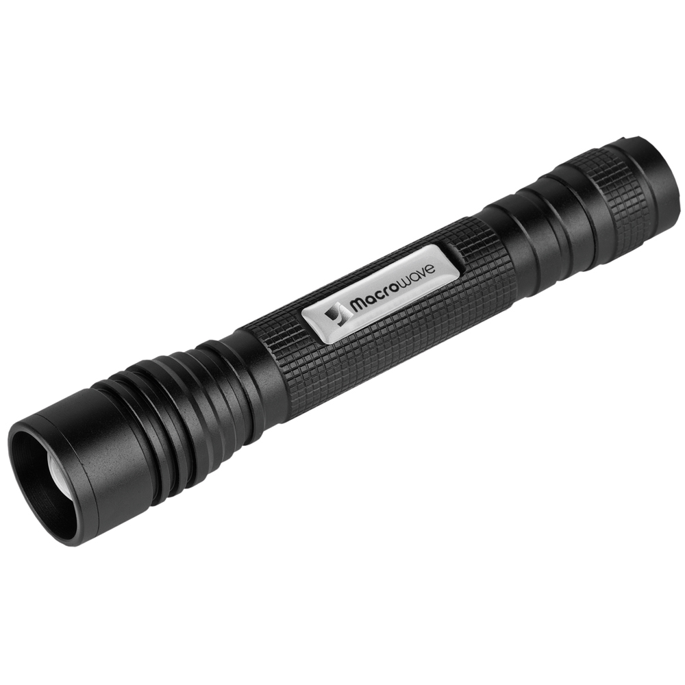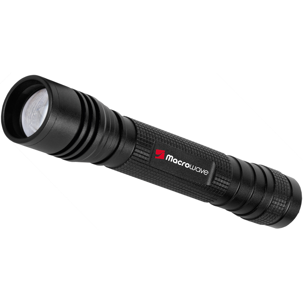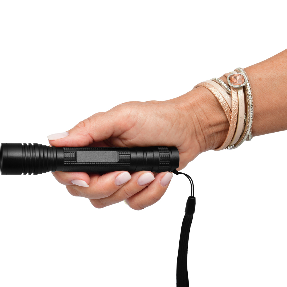 LED Taschenleuchte mit Fokussierung und Signalfunktion. Eine handliche Leuchte mit insgesamt 3 Leuchtmodi für einen vielseitigen Anwendungsbereich. Gehäuse: Aluminium eloxiert. Leuchtmittel: 3W SMD LED. Lichtwerte: 100 Lumen, 50 Meter Leuchtweite (100% Power). Leuchtmodi: 100% Power weißes Licht / 50% Power weißes Licht / Strobe weißes Licht. Equipment: fokussierbar durch Herausziehen des Leuchtenkopfes, Handschlaufe. Schutzklasse: IP44. Stromversorgung: 2 x AA Batterie (inkl.). Verpackung: schwarze Geschenkverpackung.