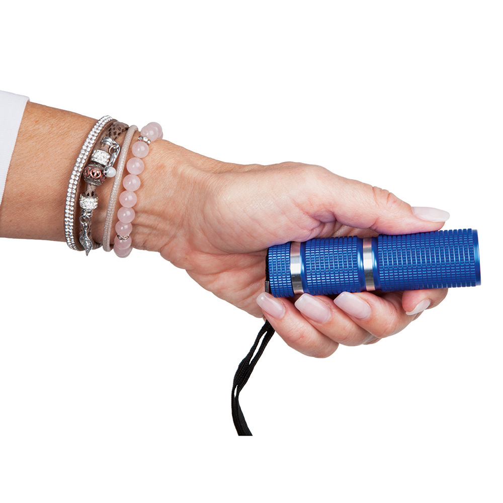 Eine robuste Taschenleuchte in attraktiver Optik mit leuchtstarker LED in einer hochwertigen Metalldose verpackt. Gehäuse: Aluminium eloxiert. Leuchtmittel: 3W SMD LED. Lichtwerte: 115 Lumen. Leuchtdauer: ca. 10 Stunden. Leuchtmodi: 100% Power weißes Licht. Equipment: Handschlaufe. Stromversorgung: 3 x AAA Batterien (inkl.). Verpackung: attraktive Metalldose.
