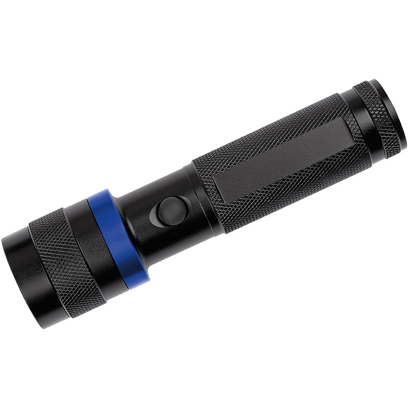 LED Taschenleuchte mit Nylon-Gürtelholster. Das griffige und sehr edel wirkende Gehäuse der Leuchte aus hochwertigem eloxiertem Aluminium, wird zusätzlich durch den farbigen Aluminiumring am Leuchtenkopf aufgewertet. Die Trageschlaufe garantiert, dass Sie die Leuchte immer fest im Griff haben. Das Gürtelholster aus Nylon sichert den schnellen Zugriff auf die Taschenleuchte. Gehäuse: Aluminium eloxiert. Leuchtmittel: OSRAM SMD LED. Lichtwerte: 400 Lumen. Leuchtdauer: ca. 10 Stunden. Leuchtmodi: 100% Power weißes Licht. Equipment: Handschlaufe, Nylon-Gürtelholster. Stromversorgung: 3 x AAA Batterien (inkl.). Verpackung: hochwertige Karton-Geschenkverpackung.