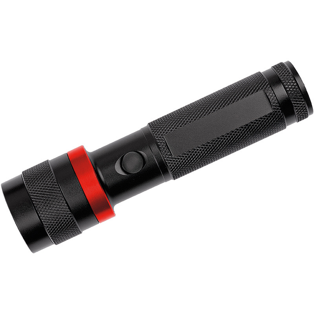 LED Taschenleuchte mit Nylon-Gürtelholster. Das griffige und sehr edel wirkende Gehäuse der Leuchte aus hochwertigem eloxiertem Aluminium, wird zusätzlich durch den farbigen Aluminiumring am Leuchtenkopf aufgewertet. Die Trageschlaufe garantiert, dass Sie die Leuchte immer fest im Griff haben. Das Gürtelholster aus Nylon sichert den schnellen Zugriff auf die Taschenleuchte. Gehäuse: Aluminium eloxiert. Leuchtmittel: OSRAM SMD LED. Lichtwerte: 400 Lumen. Leuchtdauer: ca. 10 Stunden. Leuchtmodi: 100% Power weißes Licht. Equipment: Handschlaufe, Nylon-Gürtelholster. Stromversorgung: 3 x AAA Batterien (inkl.). Verpackung: hochwertige Karton-Geschenkverpackung.