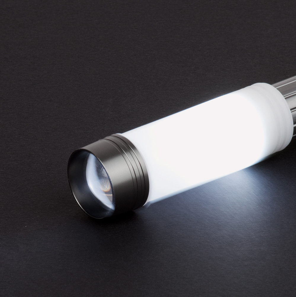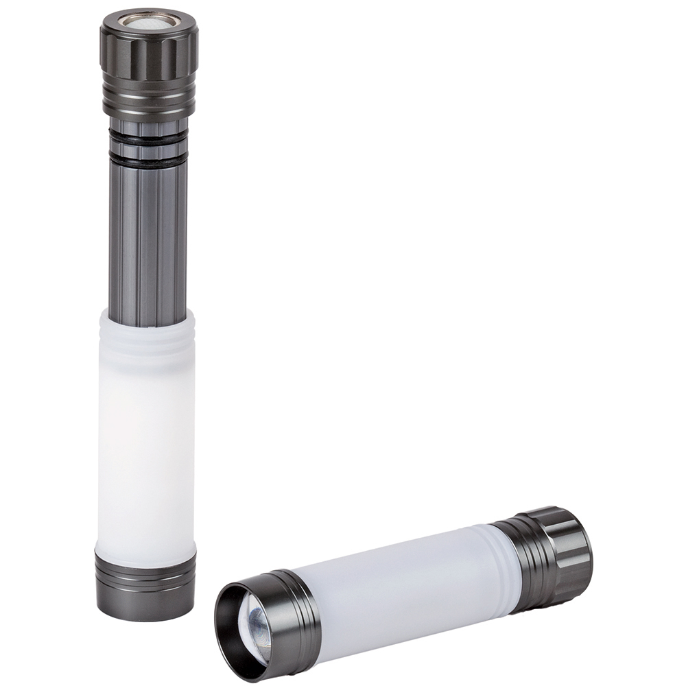 LED Taschenleuchte mit Signallichtfunktion. Die Power LED mit 50 Lumen kann in erster Funktion als Taschenleuchte genutzt werden und in drei verschiedene Leucht-Modi geschaltet werden: 100%, 50% sowie eine Signalfunktion. Ziehen Sie das Kopfteil der Taschenleuchte heraus und schon hat sich diese in eine Leuchte verwandelt, die Sie entweder stellen, legen oder auch mit Hilfe des Magnetringes am Ende der Leuchte komfortabel an magnetischen Oberflächen fixieren und das Licht punktgenau ausrichten können. Gehäuse: Aluminium eloxiert, PC. Leuchtmittel: SMD LED. Lichtwerte: 50 Lumen. Leuchtdauer: ca. 4 Stunden. Leuchtmodi: 100% Power weißes Licht / 50% Power weißes Licht / Strobe weißes Licht. Equipment: starker vernickelter Magnet. Schutzklasse: IPX4. Stromversorgung: 1 x AA Batterien (inkl.). Verpackung: schwarze Geschenkverpackung.