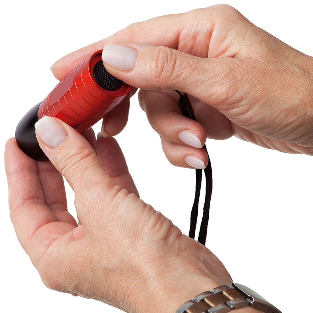 Eine robuste Taschenleuchte in attraktiver Optik mit leuchtstarker LED ausgestattet und in einer hochwertigen Metalldose verpackt. Gehäuse: Aluminium eloxiert. Leuchtmittel: 9 DIP LED. Lichtwerte: 20 Lumen. Leuchtdauer: ca. 5,5 Stunden. Leuchtmodi: 100% Power weißes Licht. Equipment: Handschlaufe. Stromversorgung: 3 x AAA Batterien (inkl.). Verpackung: attraktive Metalldose.