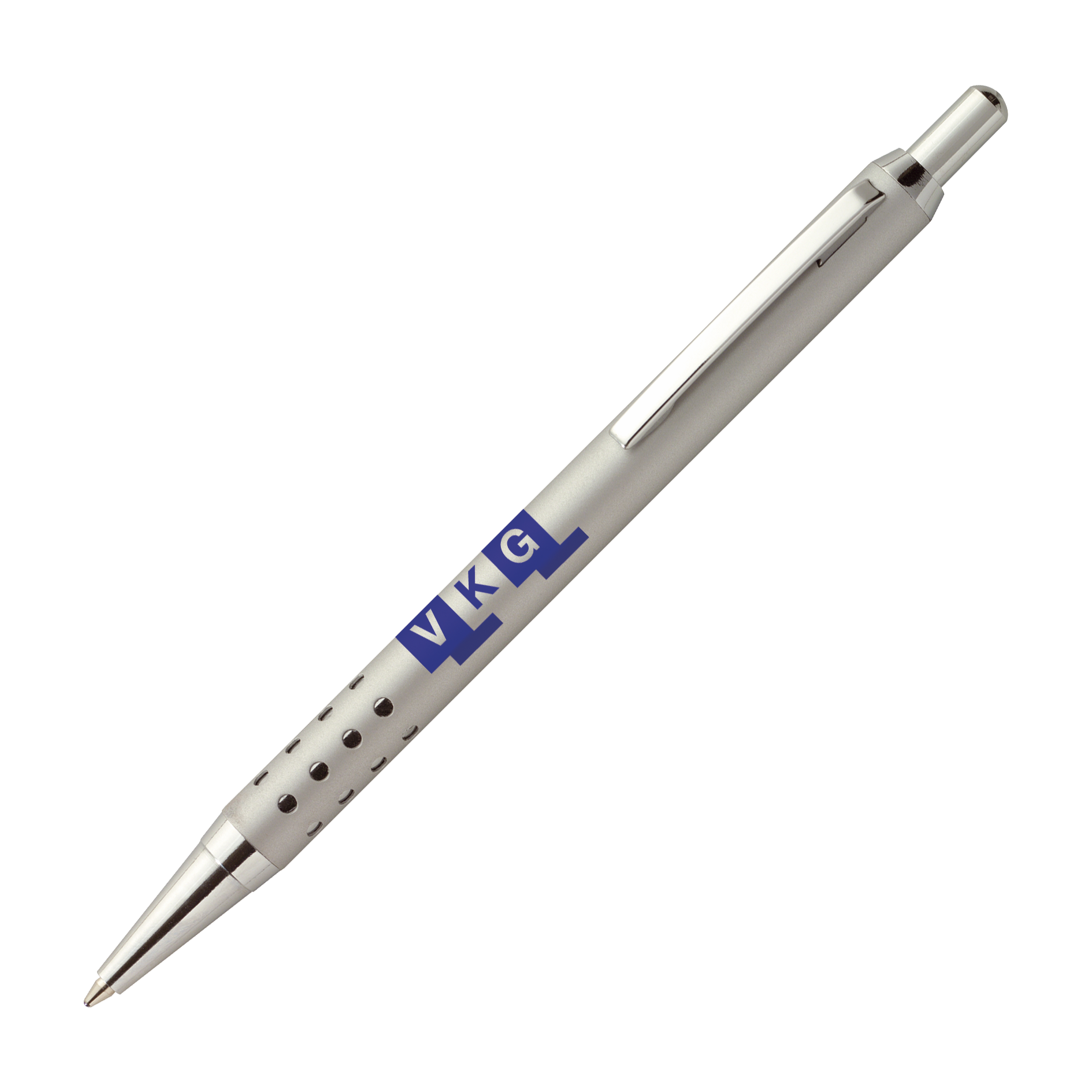 LIPARI Alu Kugelschreiber Peekay, karakteristischer Alu-design-Kugelschreiber mit Metall-Clip, Drücker und Spitze glanzverchromt, der Schaft ist ausgestattet mit auffälligem Stanzmotiv und mit silberfarbigem Hintergrund, ausgestattet mit blauschreibender Kunststoff-Großraummine für maximalen Schreibspaß!
