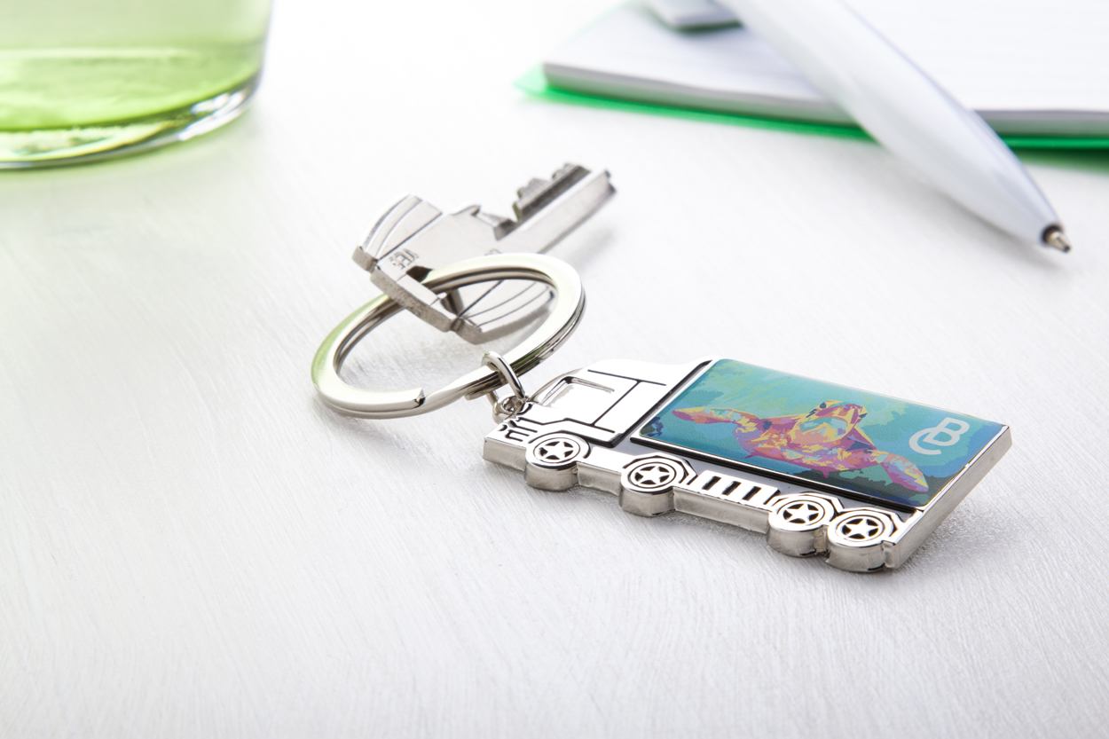Metall-Schlüsselanhänger in LKW-Form. Einzeln mit schwarzer Geschenkbox.
