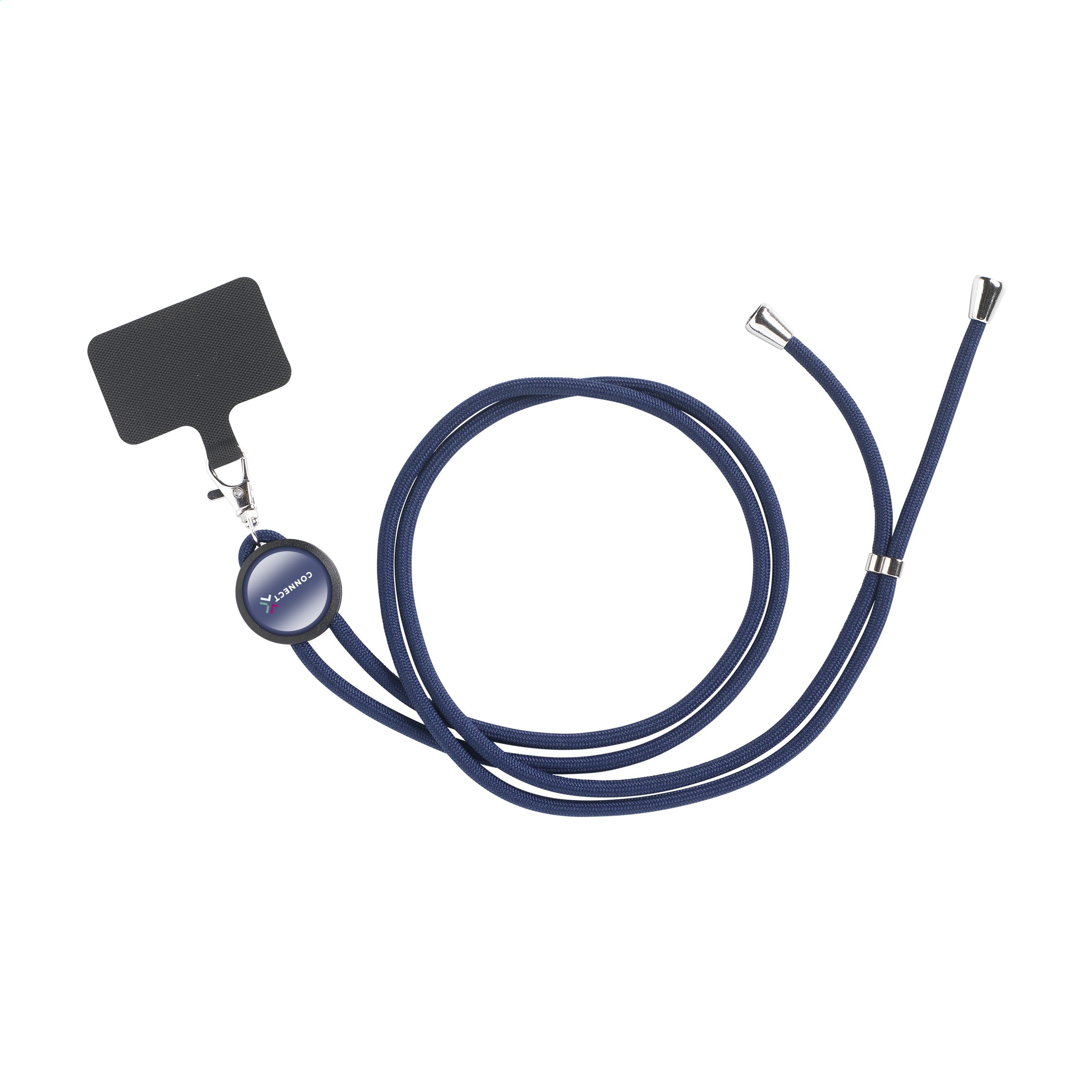 Verstellbares Handy-Lanyard mit Rundschnur aus 100% GRS RPET Polyester. Mit Metallkarabiner, verstellbarer Schlaufe und Stoppern aus Aluminium und einem runden Tag aus recyceltem Kunststoff. Der universelle Patch ermöglicht es, Ihr Smartphone an Ihrem Schlüsselband zu befestigen. Mit dieser Kombination tragen Sie Ihr Smartphone sicher um Ihren Hals. So haben Sie Ihr Mobiltelefon schnell zur Hand und halten Ihre Taschen und Hände frei. Das Patch ist mit den meisten Kombinationen aus Smartphone und Hülle kompatibel, außer mit Hüllen mit offener Unterseite. Das System ist so konzipiert, dass es den Ladeanschluss des Telefons nicht blockiert. GRS-zertifiziert. Gesamtes recyceltes Material: 40%.