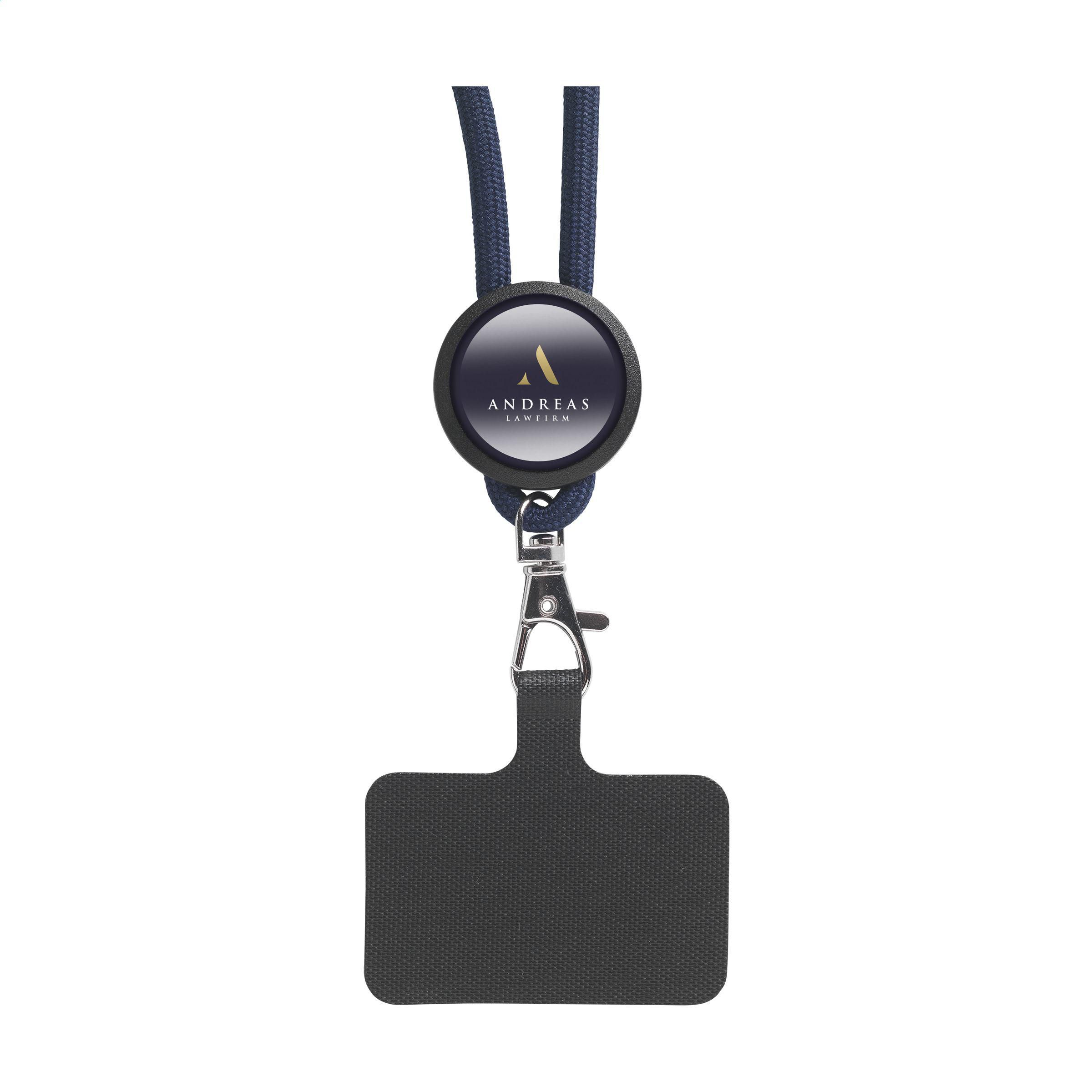 Verstellbares Handy-Lanyard mit Rundschnur aus 100% GRS RPET Polyester. Mit Metallkarabiner, verstellbarer Schlaufe und Stoppern aus Aluminium und einem runden Tag aus recyceltem Kunststoff. Der universelle Patch ermöglicht es, Ihr Smartphone an Ihrem Schlüsselband zu befestigen. Mit dieser Kombination tragen Sie Ihr Smartphone sicher um Ihren Hals. So haben Sie Ihr Mobiltelefon schnell zur Hand und halten Ihre Taschen und Hände frei. Das Patch ist mit den meisten Kombinationen aus Smartphone und Hülle kompatibel, außer mit Hüllen mit offener Unterseite. Das System ist so konzipiert, dass es den Ladeanschluss des Telefons nicht blockiert. GRS-zertifiziert. Gesamtes recyceltes Material: 40%.