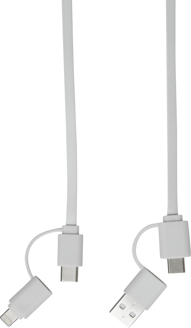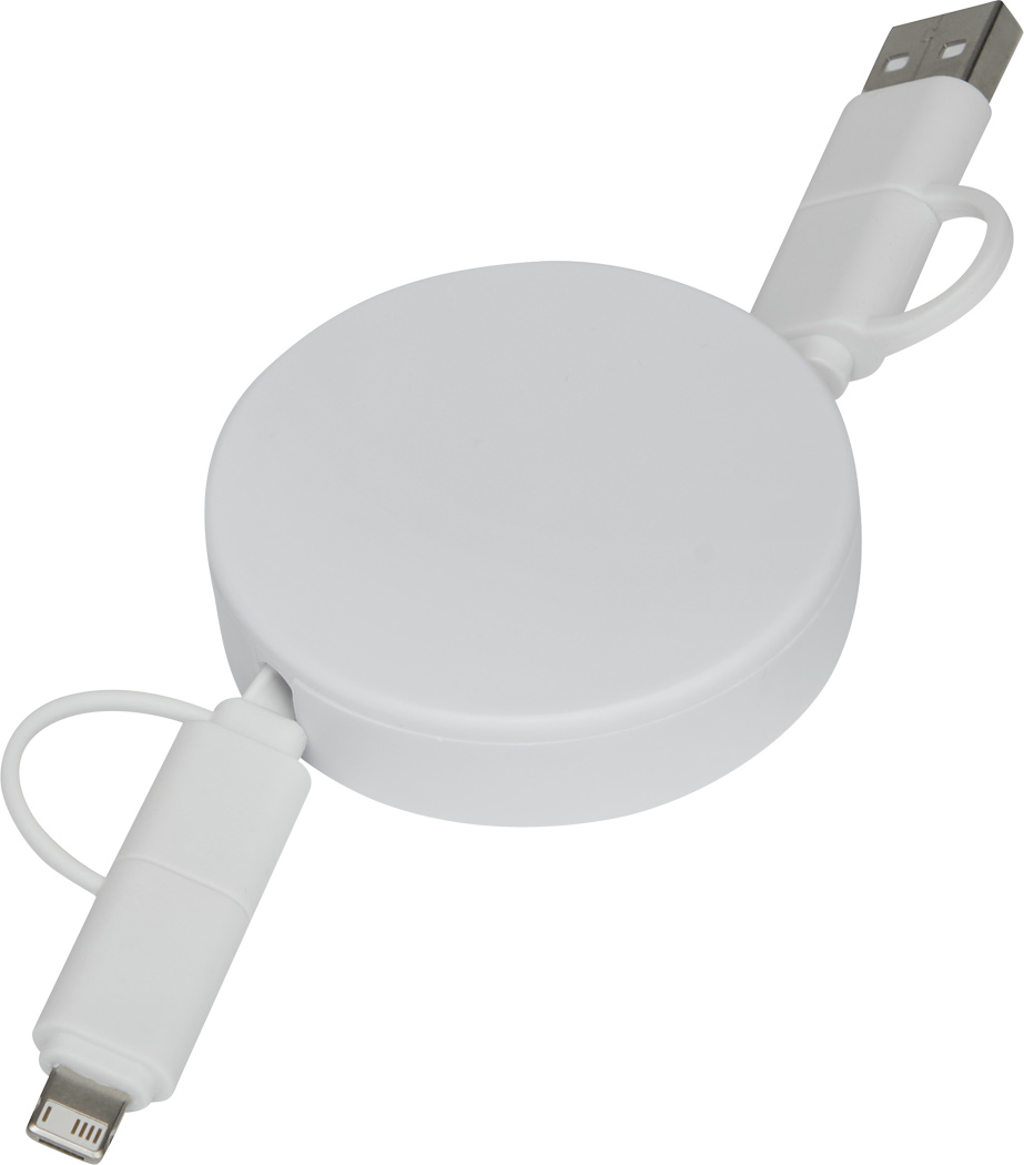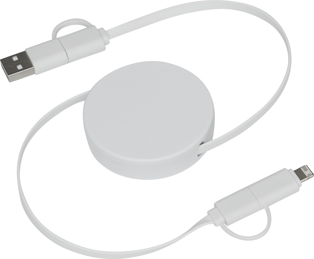 Lade- und Datenkabel TRANSFER ROUND, aufrollbar (Länge: ca. 92 cm): zum Aufladen von Smartphones, USB-betriebenen Geräten und Laptops (65W Leistungsübertragung) sowie zum Übertragen von Daten, inkl. 2 Ladesteckern (USB Typ C, Kombistecker Micro-USB / Lightning), kombinierter USB Typ A / Typ C Eingangsstecker, in Box