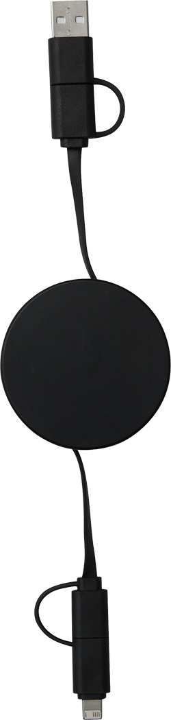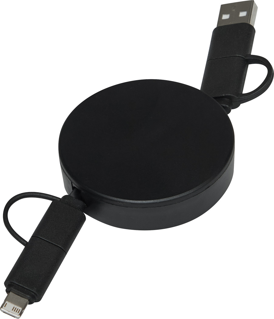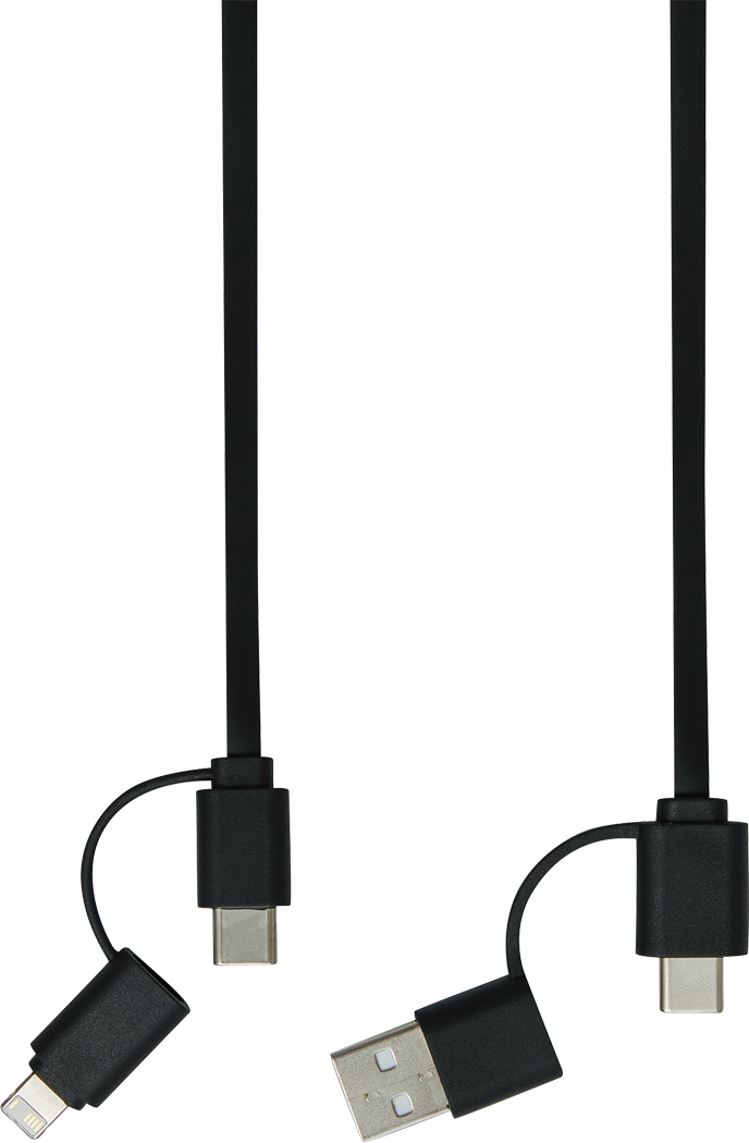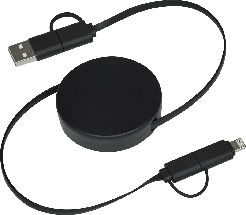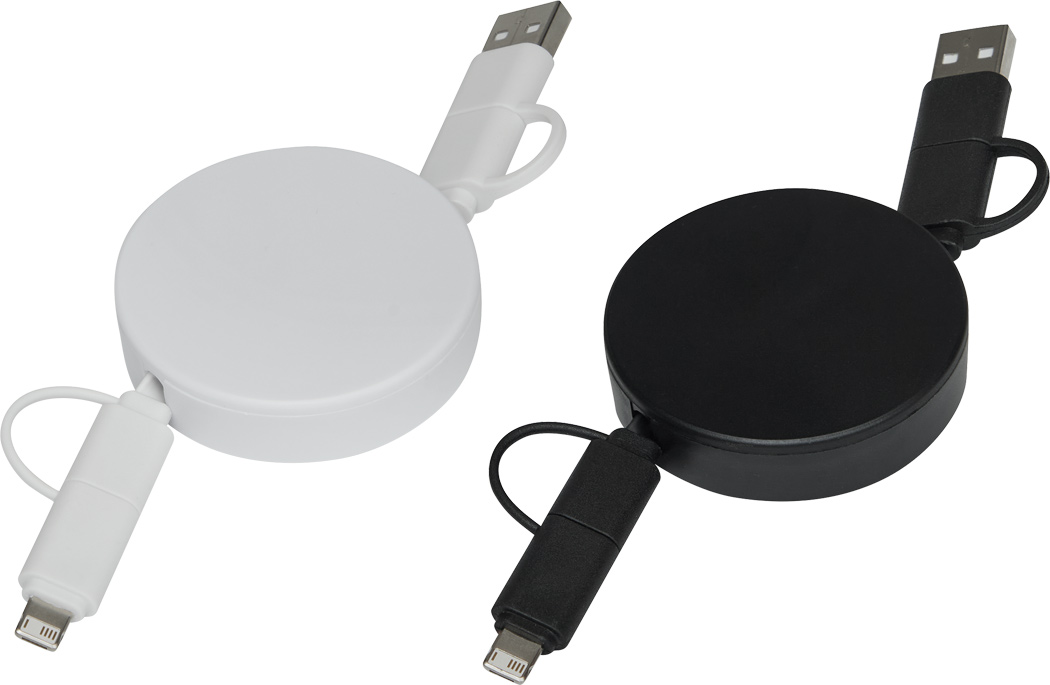 Lade- und Datenkabel TRANSFER ROUND, aufrollbar (Länge: ca. 92 cm): zum Aufladen von Smartphones, USB-betriebenen Geräten und Laptops (65W Leistungsübertragung) sowie zum Übertragen von Daten, inkl. 2 Ladesteckern (USB Typ C, Kombistecker Micro-USB / Lightning), kombinierter USB Typ A / Typ C Eingangsstecker, in Box