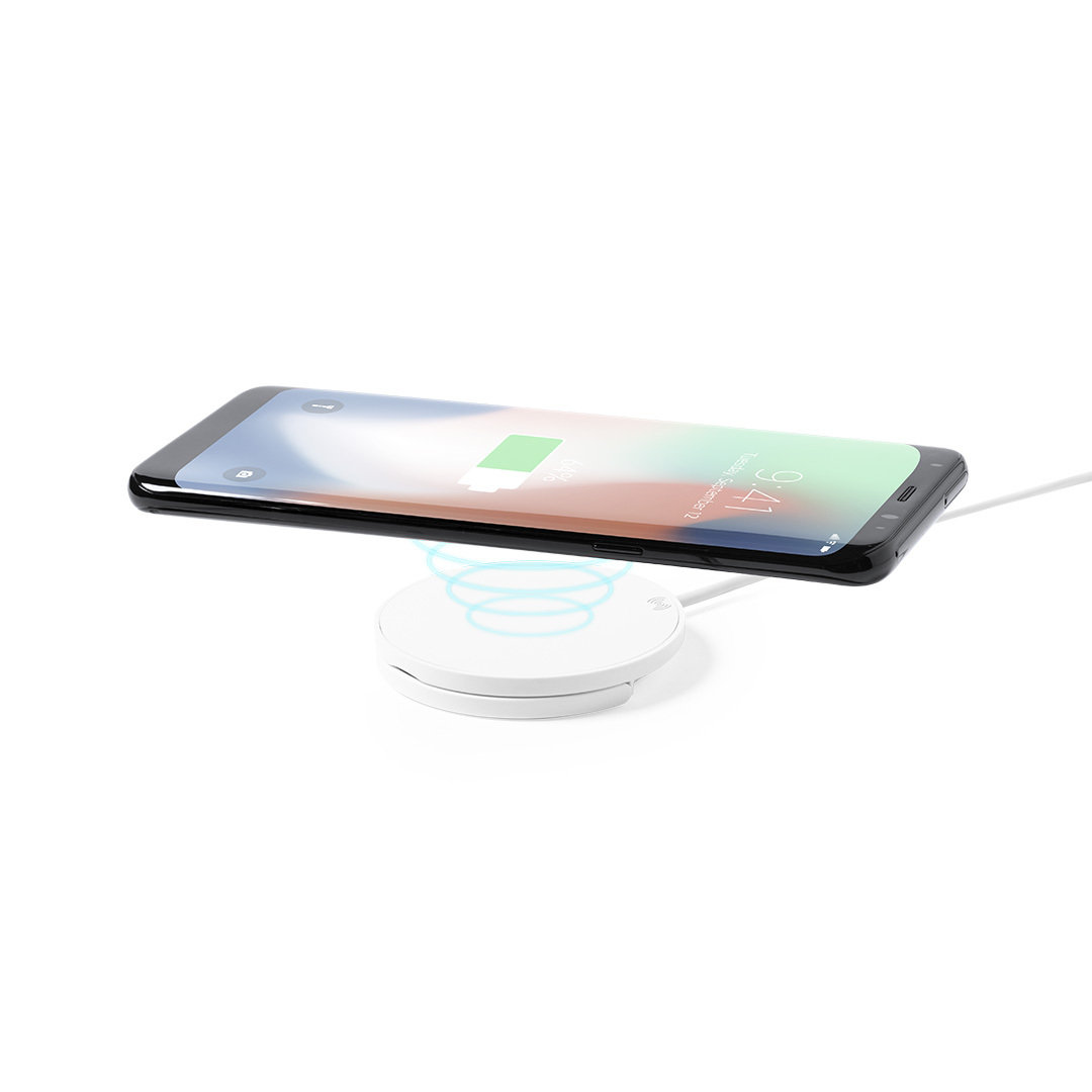 10W magnetisches kabelloses Ladegerät mit integriertem Ständer. Gehäuse aus recyceltem ABS (RABS) und mit RCS-Zertifizierung, die seine recycelte Herkunft garantiert. Mit 1m USB-Kabel. Inklusive Metallzubehör mit 3M-Kleber, extra starke Fixierung und rückstandsfrei beim Ablösen vom Gerät, so dass die magnetische Funktion des Ladegeräts an jedem mobilen Gerät genutzt werden kann. Kompatibel mit Terminals, die mit kabelloser Ladetechnologie ausgestattet sind. Große Beschriftungsfläche und präsentiert in einer attraktiven Öko-Designbox. Bedienungsanleitung in Spanisch und Englisch verfügbar.
