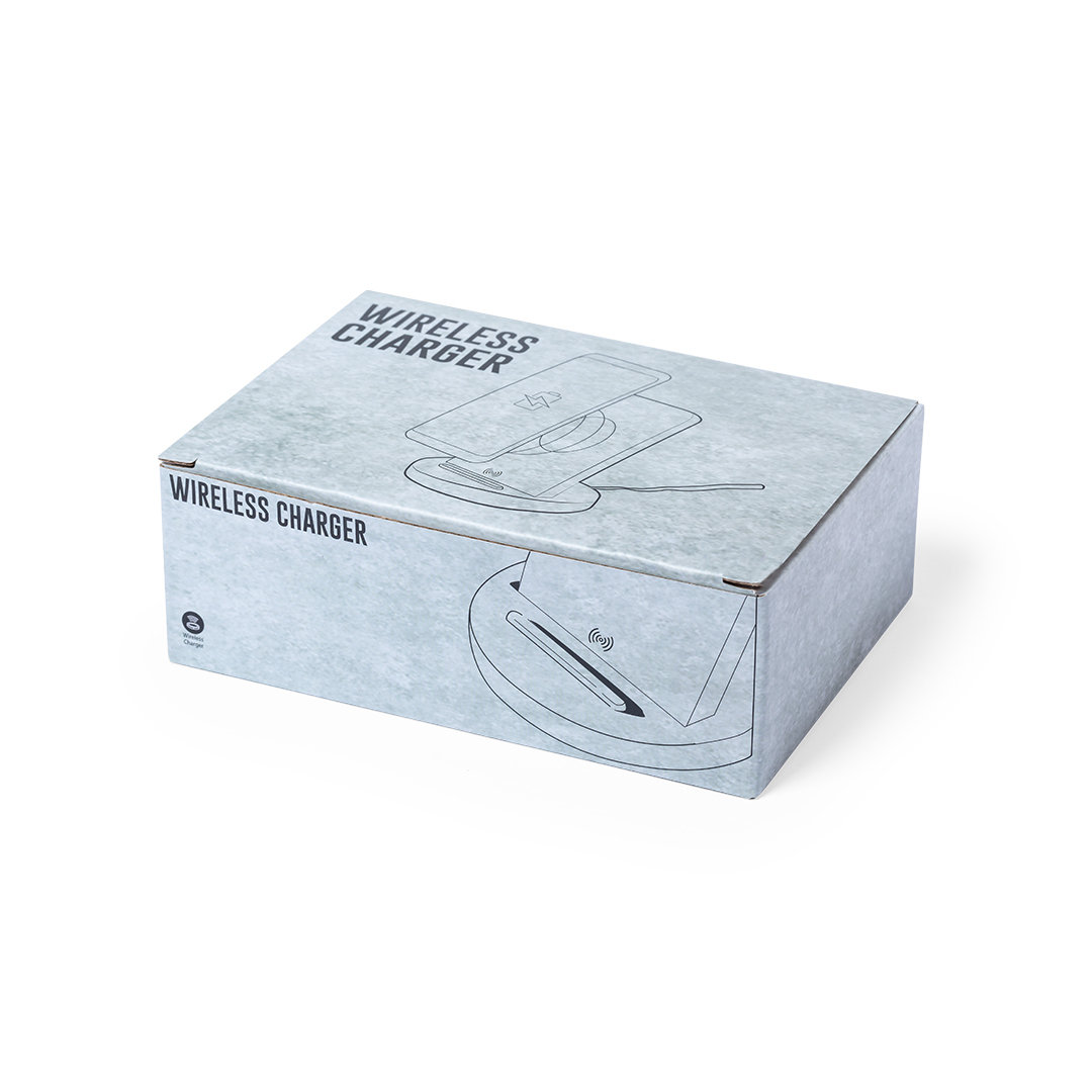 Drahtloses Ladegerät mit rundem Design in Kombination aus natürlich geschnittenen Bambusstücken und Kalksteinzement, einem Konglomerat, das durch die Mischung natürlicher Materialien, hauptsächlich gemahlener Kalkstein und Wasser, gebildet wird, wodurch ein Material von großer Konsistenz und Haltbarkeit entsteht. USB-Ladekabel in passender Farbe, kompatibel mit Geräten, die mit drahtloser Ladetechnologie ausgestattet sind. Sicherheitsschutz zur Vermeidung von Überhitzung, Überladung und Kurzschluss. Präsentiert in einer attraktiven Design-Box.