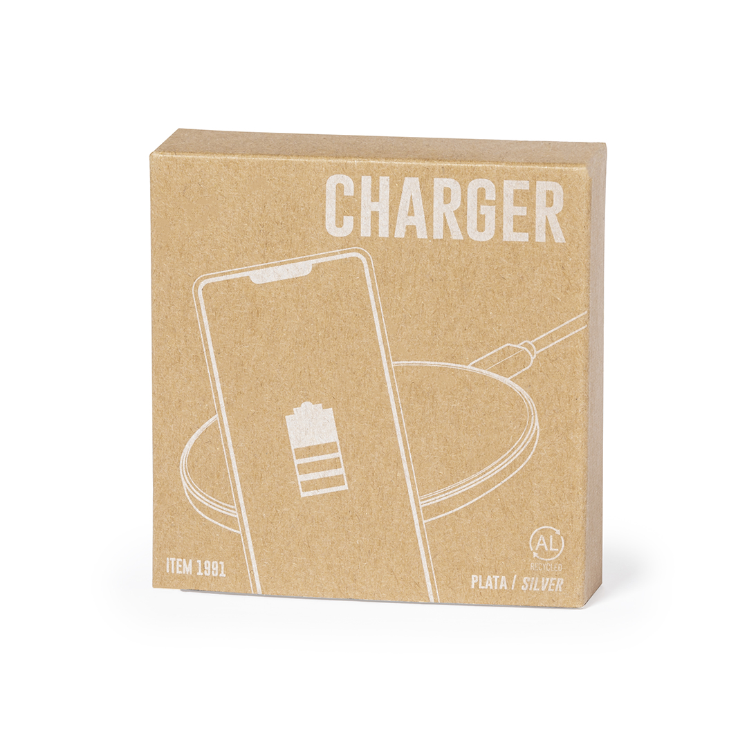 Kabelloses Ladegerät 15W im runden Design. Hergestellt aus recyceltem Aluminium, einem Material mit nahezu unbegrenzten Recyclingmöglichkeiten, das seine ursprünglichen Eigenschaften behält und dabei weniger Energie verbraucht. Kompatibel mit Geräten, die mit der kabellosen Qi-Ladetechnologie ausgestattet sind. Rutschfeste Basis, inklusive Typ-C-Ladekabel und in vielen Farben erhältlich. Präsentiert in einer individuellen Kraftpapier-Designbox, mit Bedienungsanleitung in Englisch und Spanisch. Hergestellt nach RoHS-Standards und unter Einhaltung der folgenden Sicherheitsanforderungen: Überhitzungsschutzsystem. Überladeschutzsystem. Blockiersystem zur Vermeidung von Kurzschlüssen.