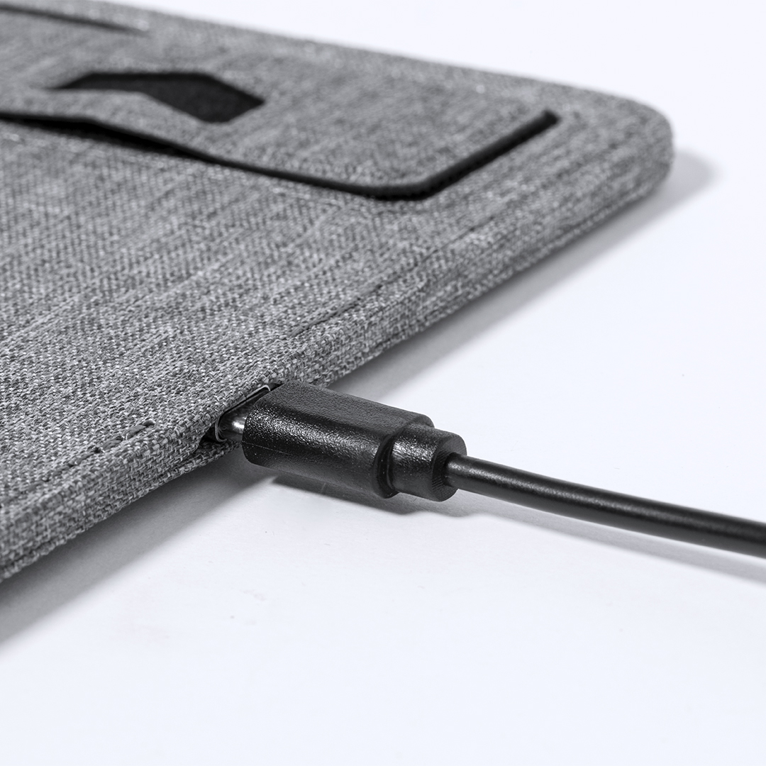 Elegantes und funktionales Mauspad aus weichem RPET-Polyester. Mit Typ-C-Eingang - schwarzes Typ-C-Kabel im Lieferumfang enthalten - und kabellosem 15-W-Ladegerät, kompatibel mit Geräten, die mit kabelloser Qi-Ladetechnologie ausgestattet sind. Inklusive Smartphone-Halter und Kugelschreiberhalter. Mit rutschfestem Boden, der Stabilität und Komfort bei der Benutzung garantiert. Inklusive Bedienungsanleitung in Englisch und Spanisch. Präsentiert in einer individuellen Kraft-Design-Box und in einer recycelten Tasche. Das RPET-Material wird aus recyceltem Kunststoff hergestellt, wodurch die Wiederverwendung von Kunststoffabfällen gefördert und ein Beitrag zur Nachhaltigkeit unseres Planeten geleistet wird. Hergestellt gemäß den RoHS-Normen und unter Einhaltung der folgenden Sicherheitsanforderungen:Überhitzungsschutzsystem.Überladungsschutzsystem. Blockiersystem zur Vermeidung von Kurzschlüssen.