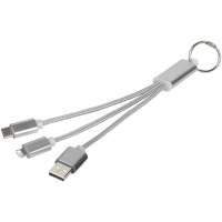 USB-Ladekabel aus Aluminium mit Schlüsselring. Verfügt über Micro-USB-, USB-C und Lightning-Stecker.