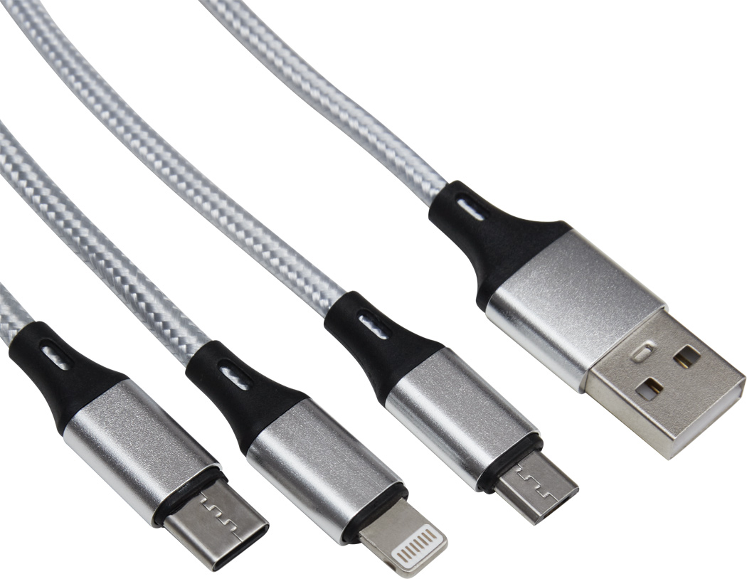Ladekabel CHARGE DISTANCE: zum Aufladen von Smartphones und USB-betriebenen Geräten, inkl. 3 Ladesteckern (USB Typ C, Micro-USB und Lightning), Kabellänge ca. 120 cm
