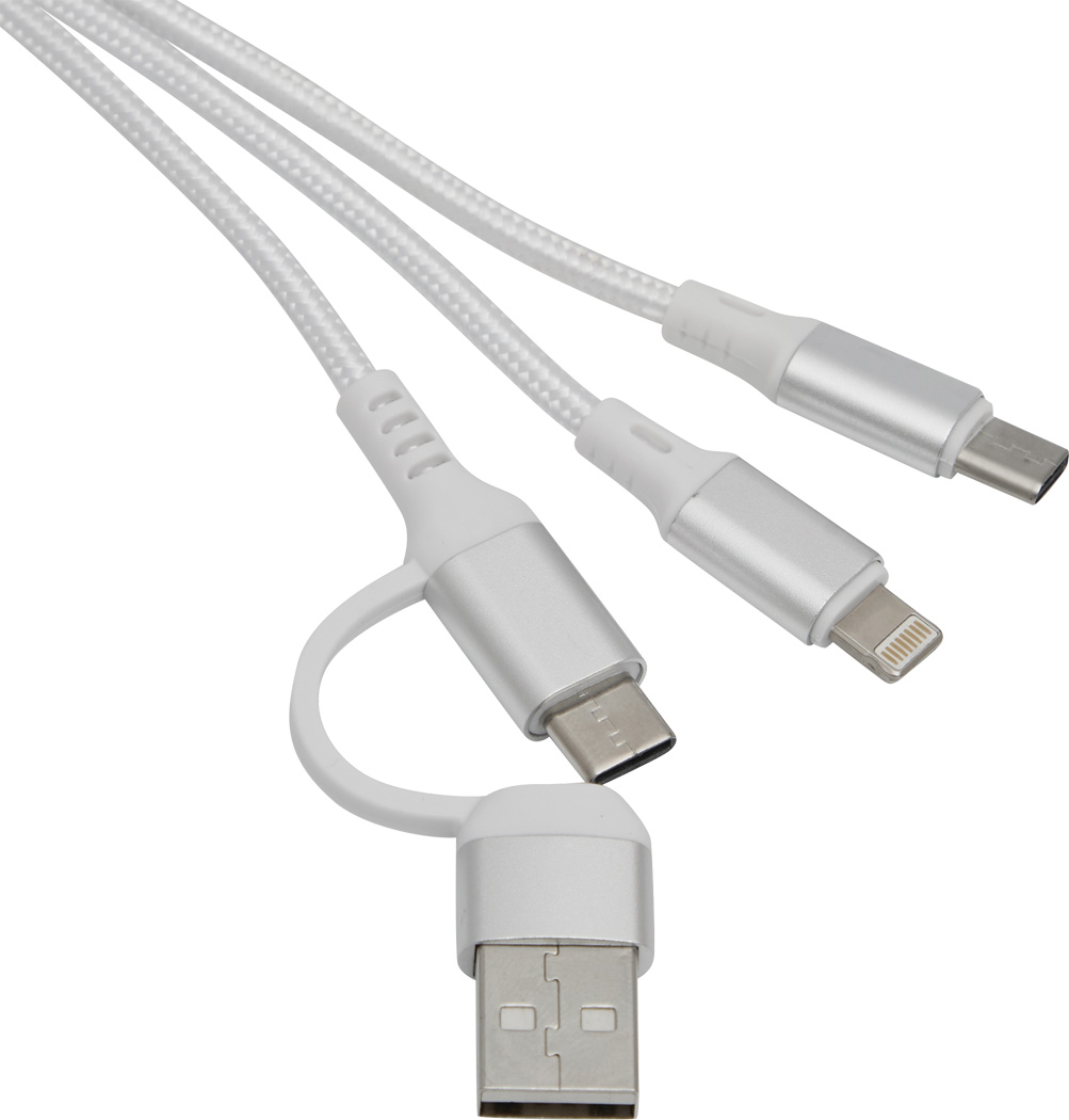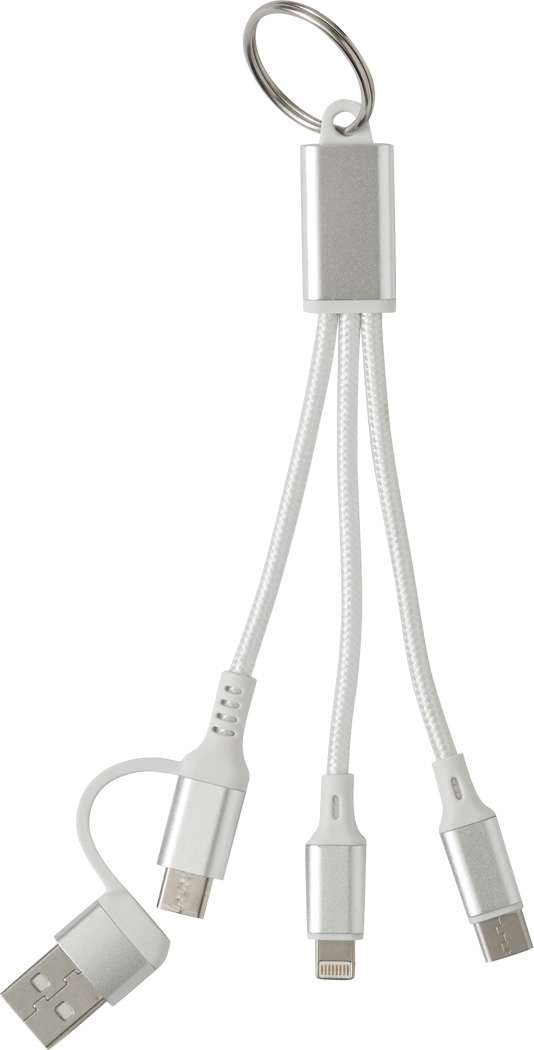 Ladekabel FANTAIL: zum Aufladen von Smartphones und USB-betriebenen Geräten, inkl. 2 Ladesteckern (USB Typ C, Kombistecker Micro-USB / Lightning), Kabellänge ca. 18 cm, kombinierter USB Typ A / Typ C Eingangsstecker, mit Schlüsselring