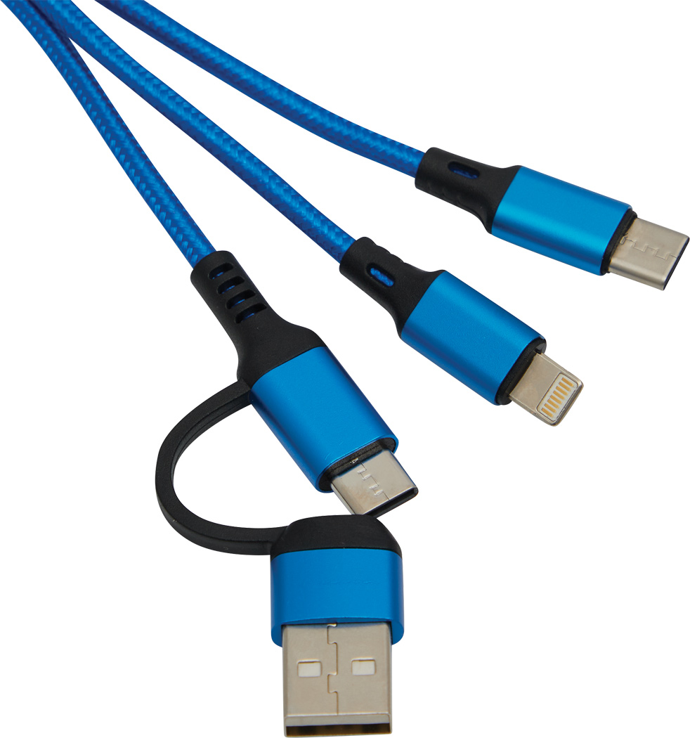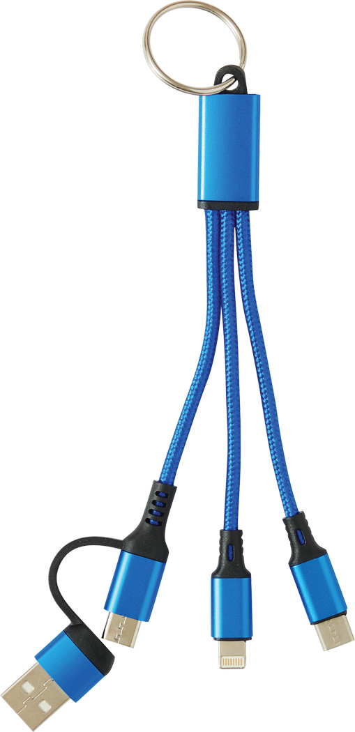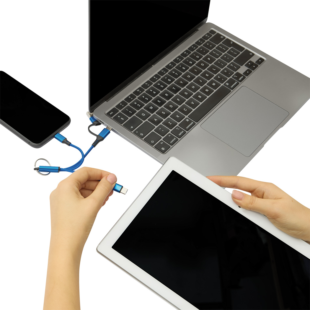 Ladekabel FANTAIL: zum Aufladen von Smartphones und USB-betriebenen Geräten, inkl. 2 Ladesteckern (USB Typ C, Kombistecker Micro-USB / Lightning), Kabellänge ca. 18 cm, kombinierter USB Typ A / Typ C Eingangsstecker, mit Schlüsselring