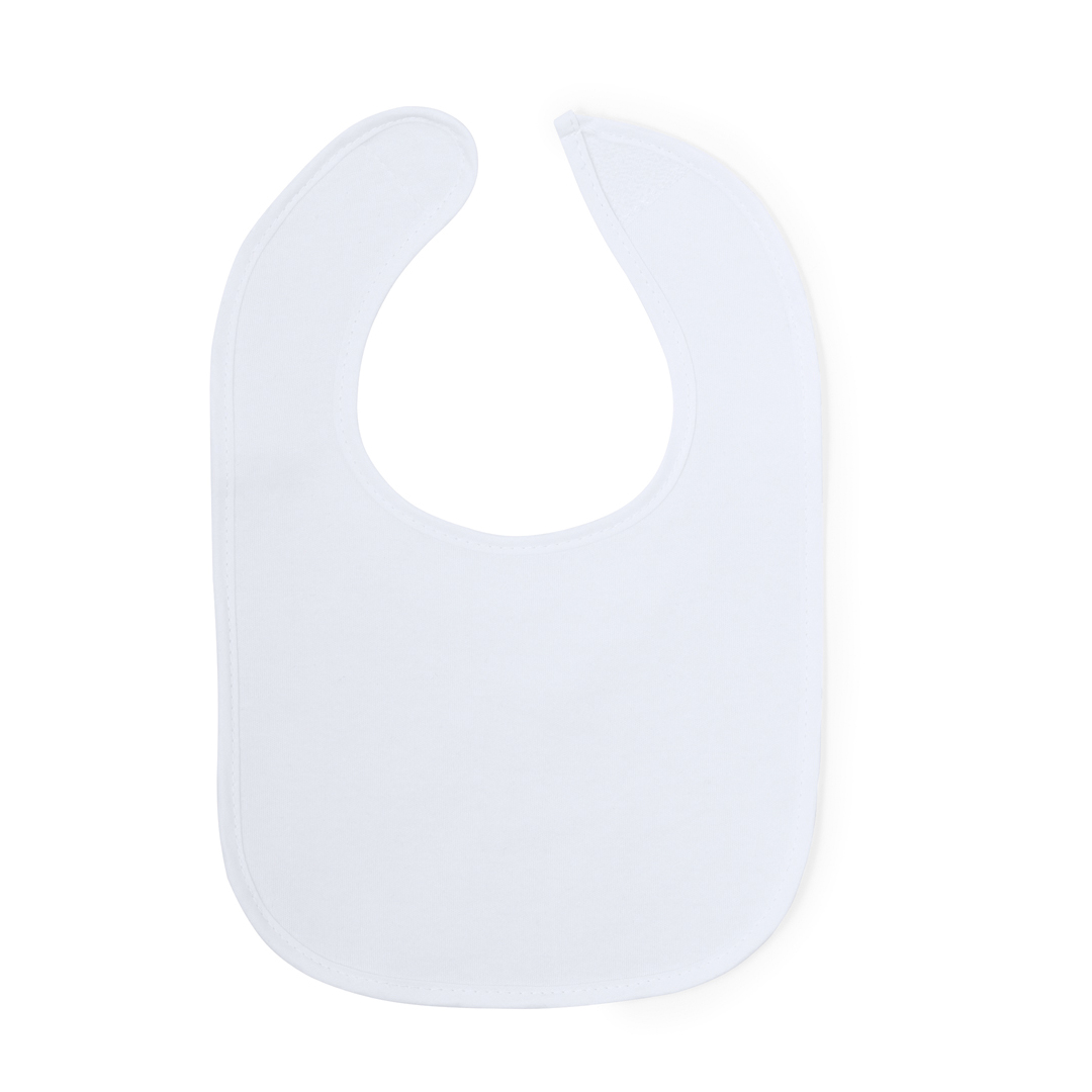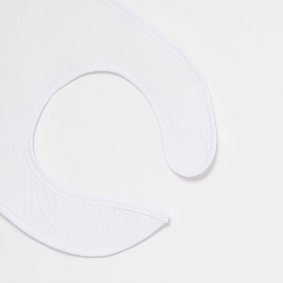 Praktisches Kinderlätzchen aus Baumwolle, mit Klettverschluss für eine bessere Passform. In weißer Farbe.