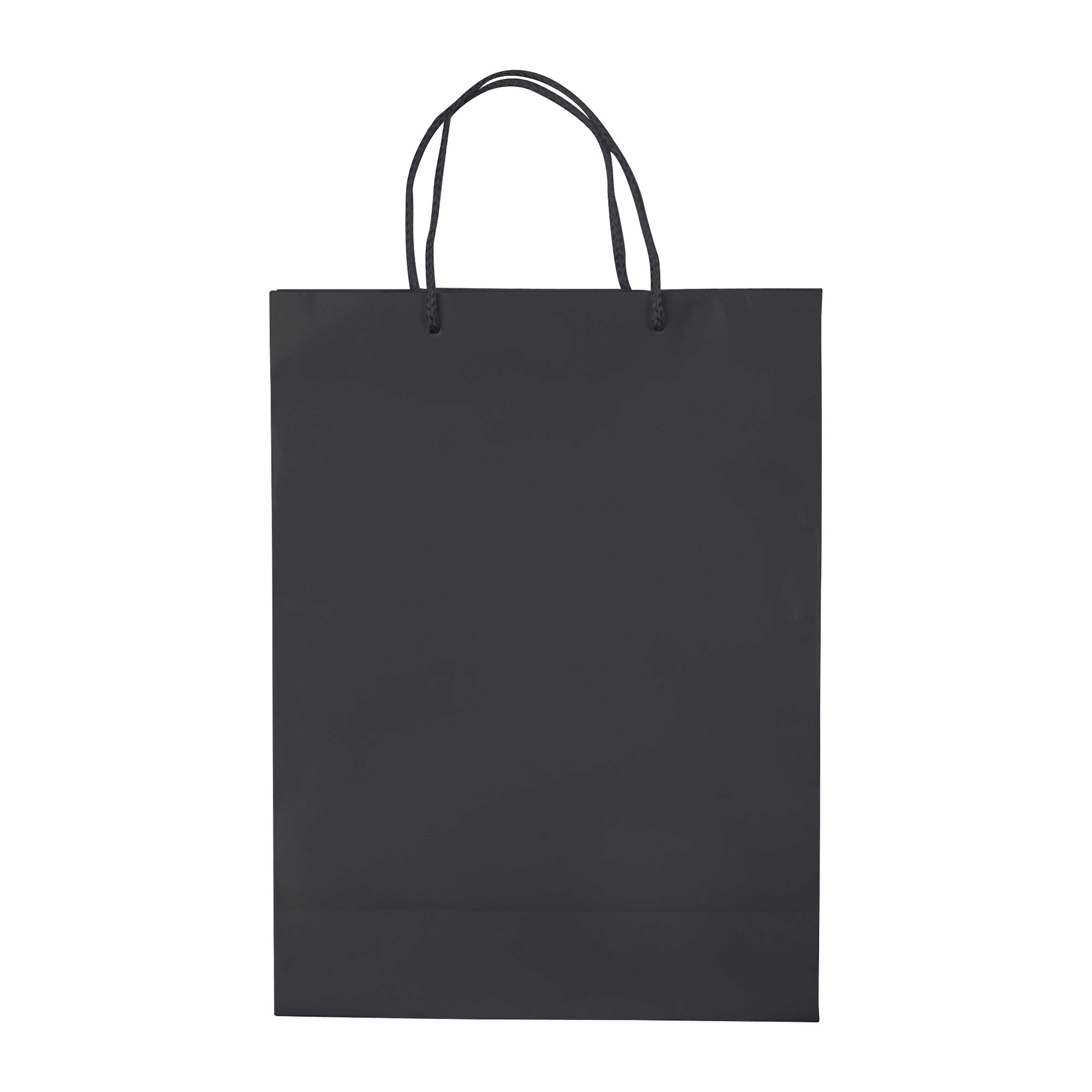 Große Papiertüte mit Seilgriffen. Erhältlich in mehreren Farben mit weißen / schwarzen Griffen. Große Druckfläche auf beiden Seiten. Starke Tasche. Glänzende Laminierung.
