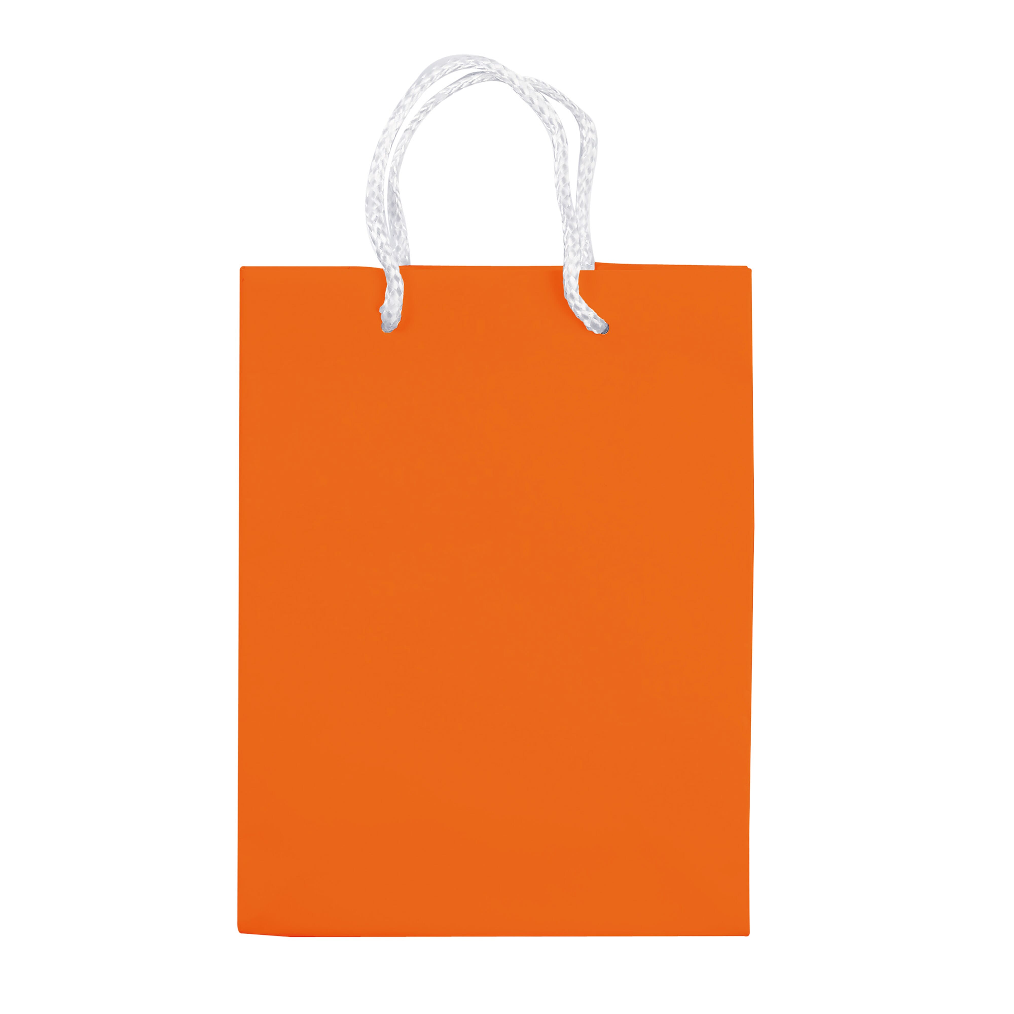 Kleine Papiertüte mit Seilgriffen. Erhältlich in mehreren Farben mit Riemen in Schwarz oder Weiß. Stark und für kleine Artikel geeignet. Glänzende Laminierung.