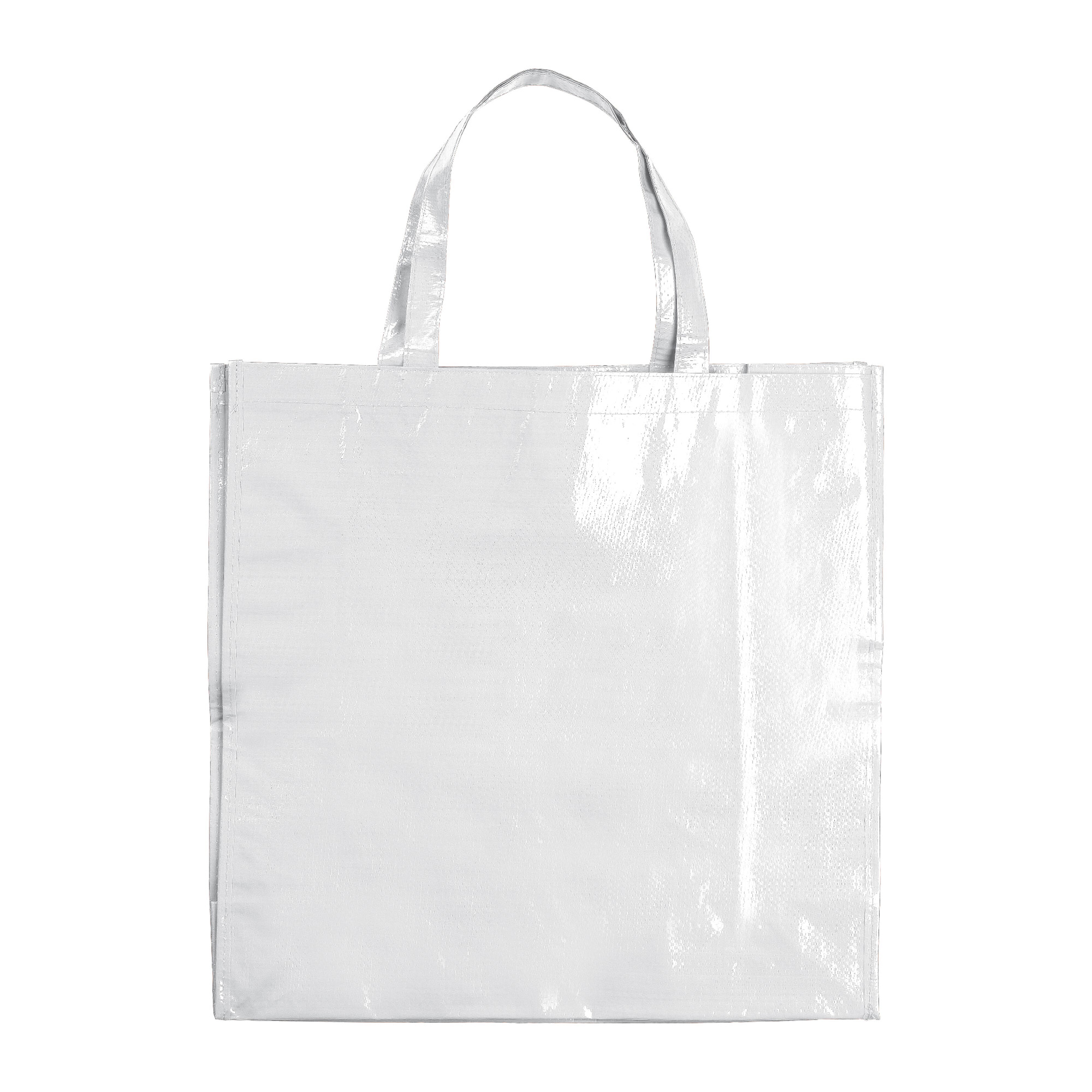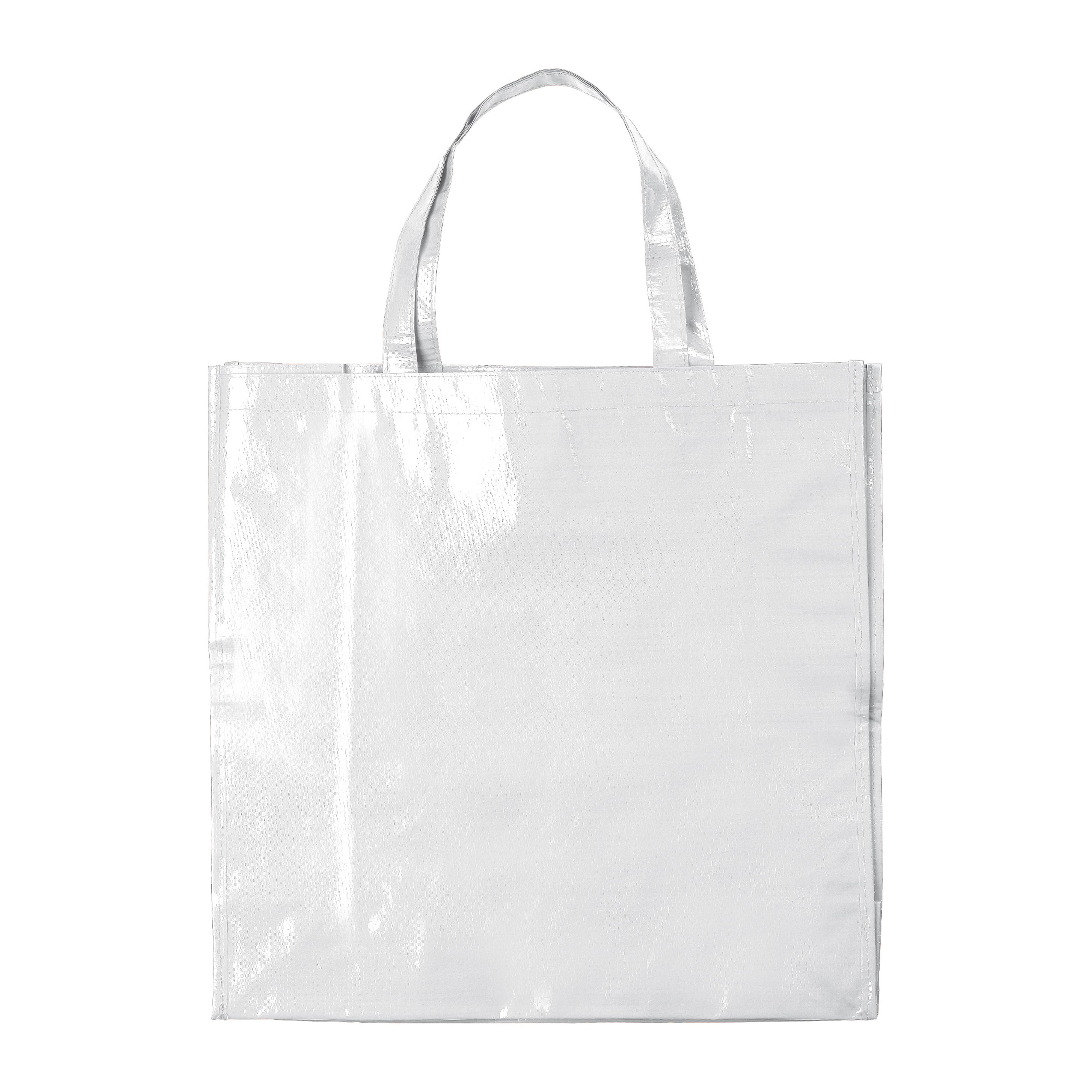 Beschreibung: Große glänzende Einkaufstasche aus gewebtem PP-Material. Große Druckfläche.