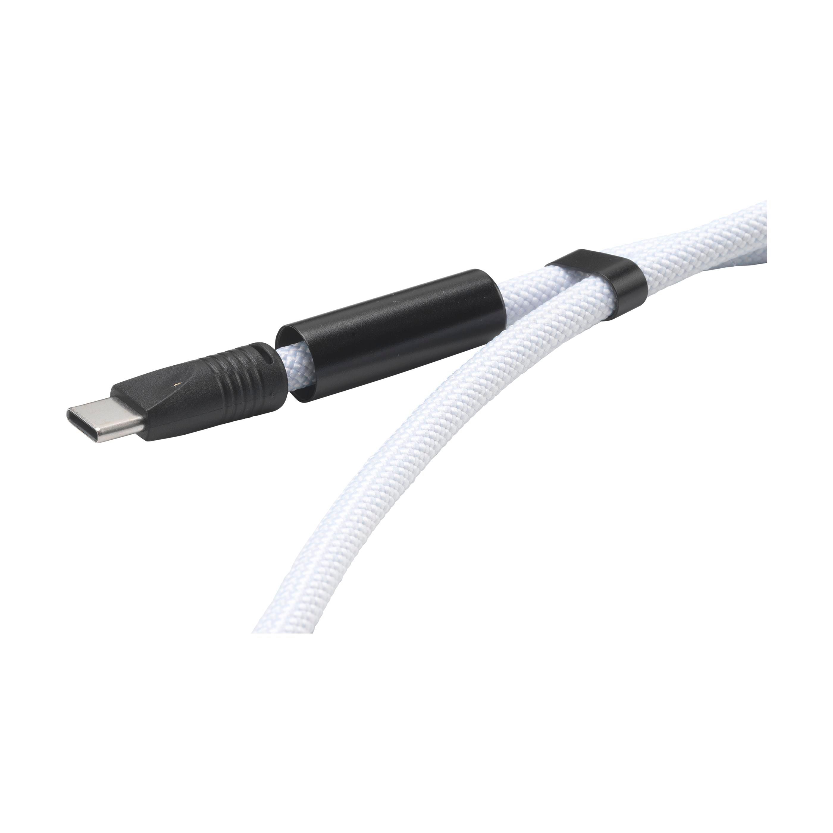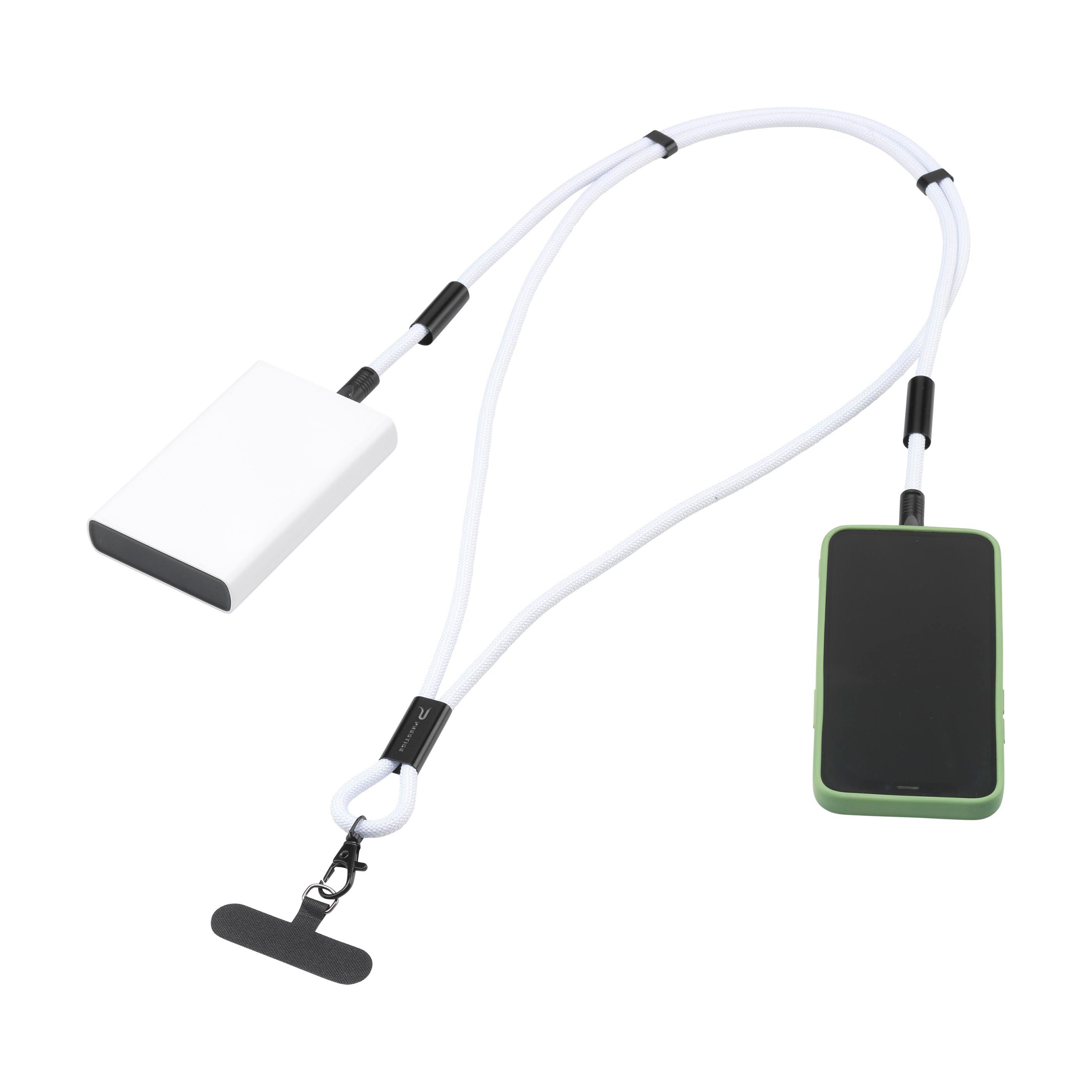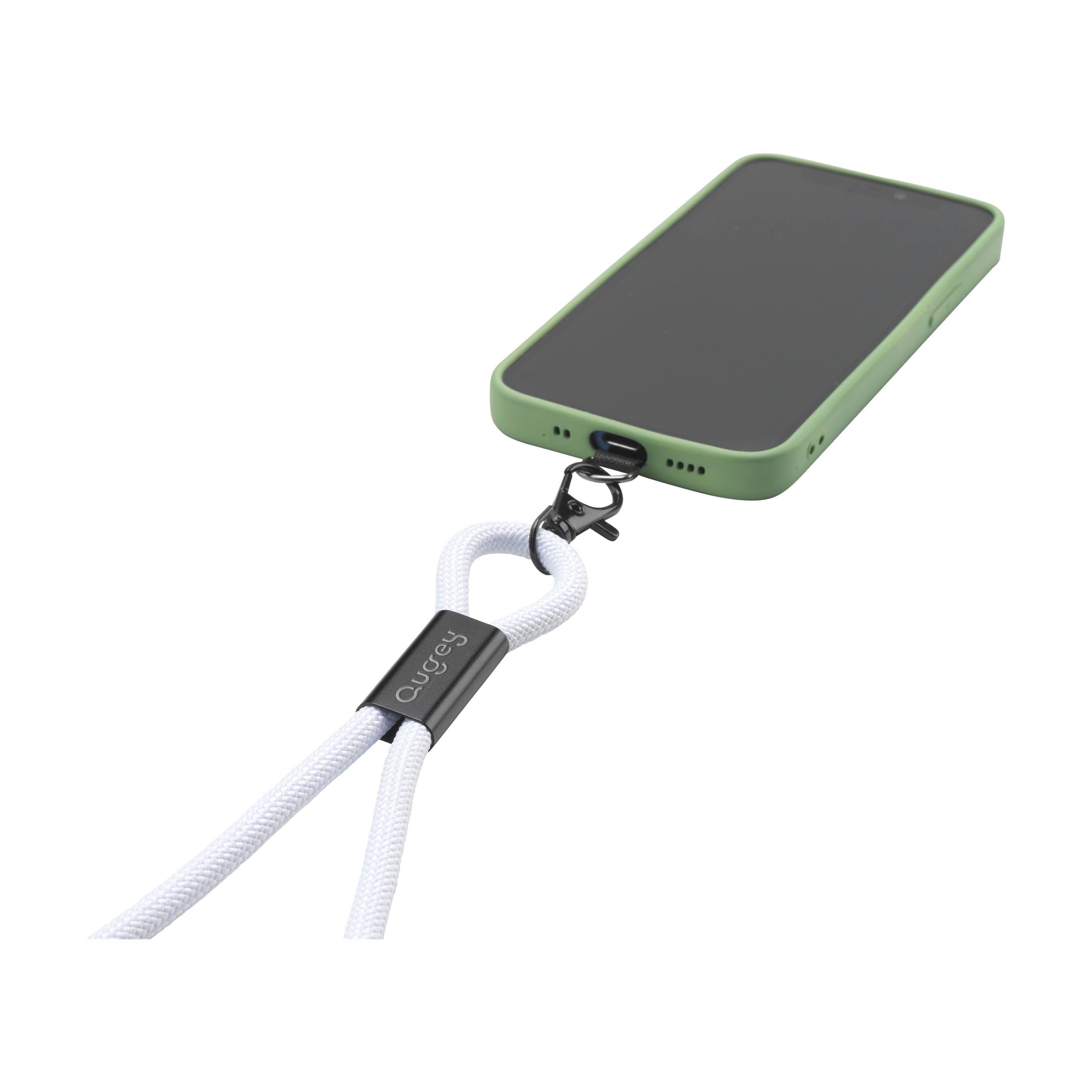 Lanyard 2-in-1-Ladekabel. Die Außenseite des Kabels besteht aus 100% recyceltem Polyester. Dieses Zubehör verfügt über ein integriertes USB-C-zu-USB-C-Kabel, das eine Daten- oder Ladeleistung von bis zu 60W unterstützt. Verstellbare Länge für maximalen Tragekomfort um den Hals oder über der Schulter. Mit Metallhaken, D-Ring, verstellbaren Aluminiumschlaufen und TPU-Mobilfunkaufsatz (6 x 2,7 x 1 cm). Ihr Telefon lässt sich leicht befestigen. Ein trendiges Must-Have für alle, die Stil und Komfort verbinden möchten. Auch für Apple CarPlay geeignet. GRS-zertifiziert.