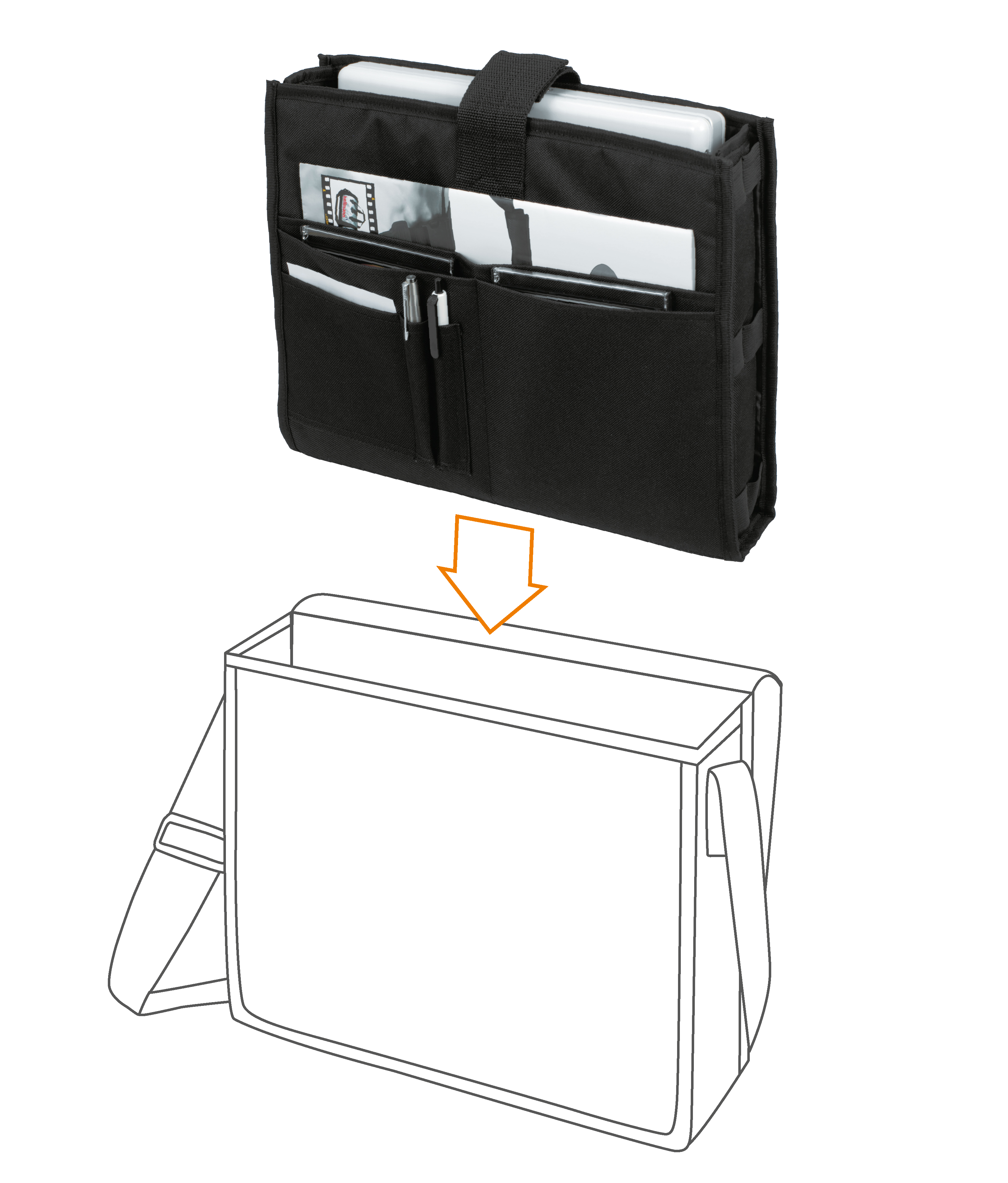 Rüsten Sie Ihre Umhängetaschen auf: gepolstertes Einsteckmodul fürs Laptop mit diversen Organizer-Elementen; Preis ohne Konfektionierung